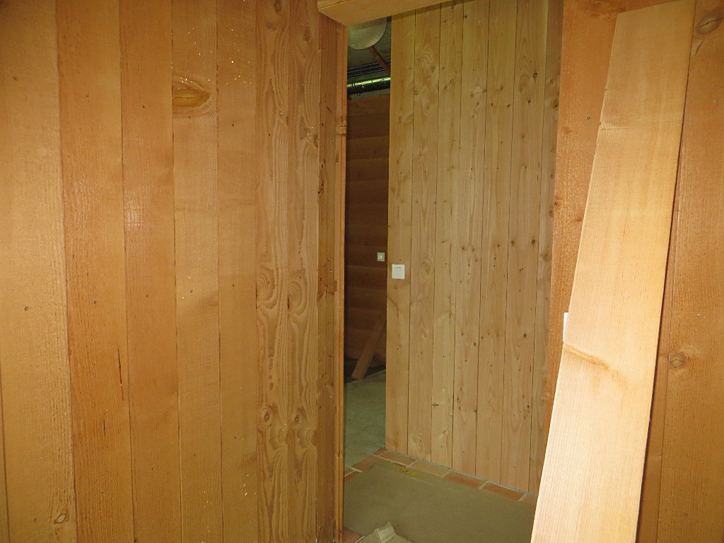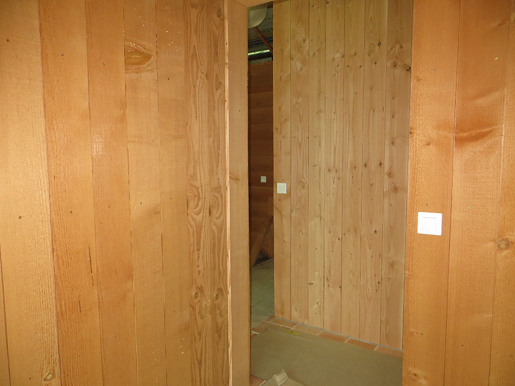 2018/08/15 : Lambris (29) - Chambre n°2 (murs)Mis à jour : 2 octobre 2018 | Imprimer | Affichages : 1152 Dans la chambre n°2, fin de la pose du lambris sur les murs ... Au dessus de la porte d'entrée (Nord) : Encadrement de la porte :