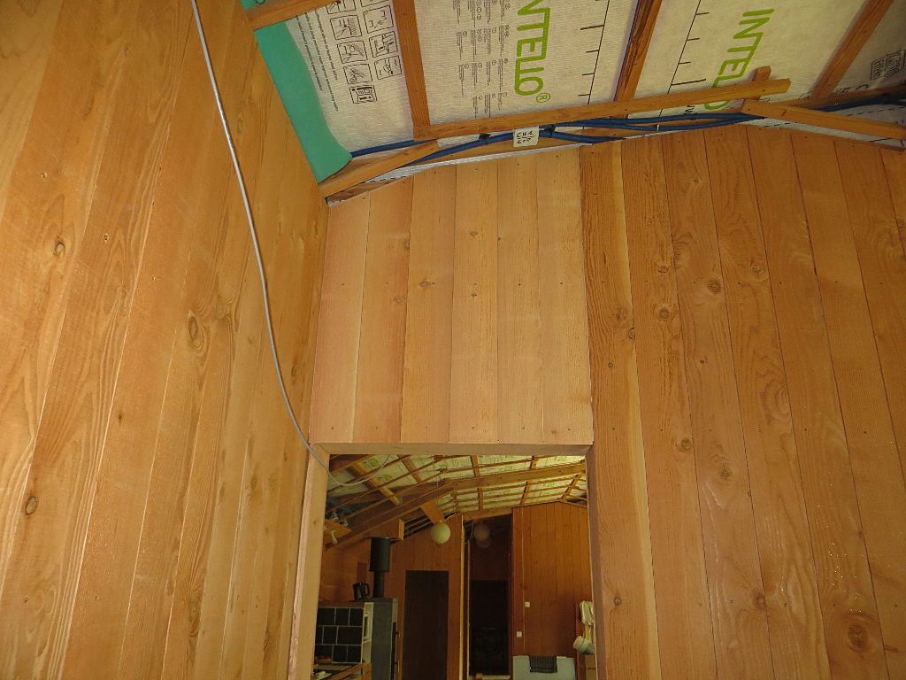 2018/08/16 : Lambris (30) - Chambre n°1 (murs)Mis à jour : 9 octobre 2018 | Imprimer | Affichages : 1347 Dans la chambre n°1, fin de la pose du lambris sur les murs ... Encadrement de la porte : Refection du lambris au dessus de la porte d'entrée (Est) :
