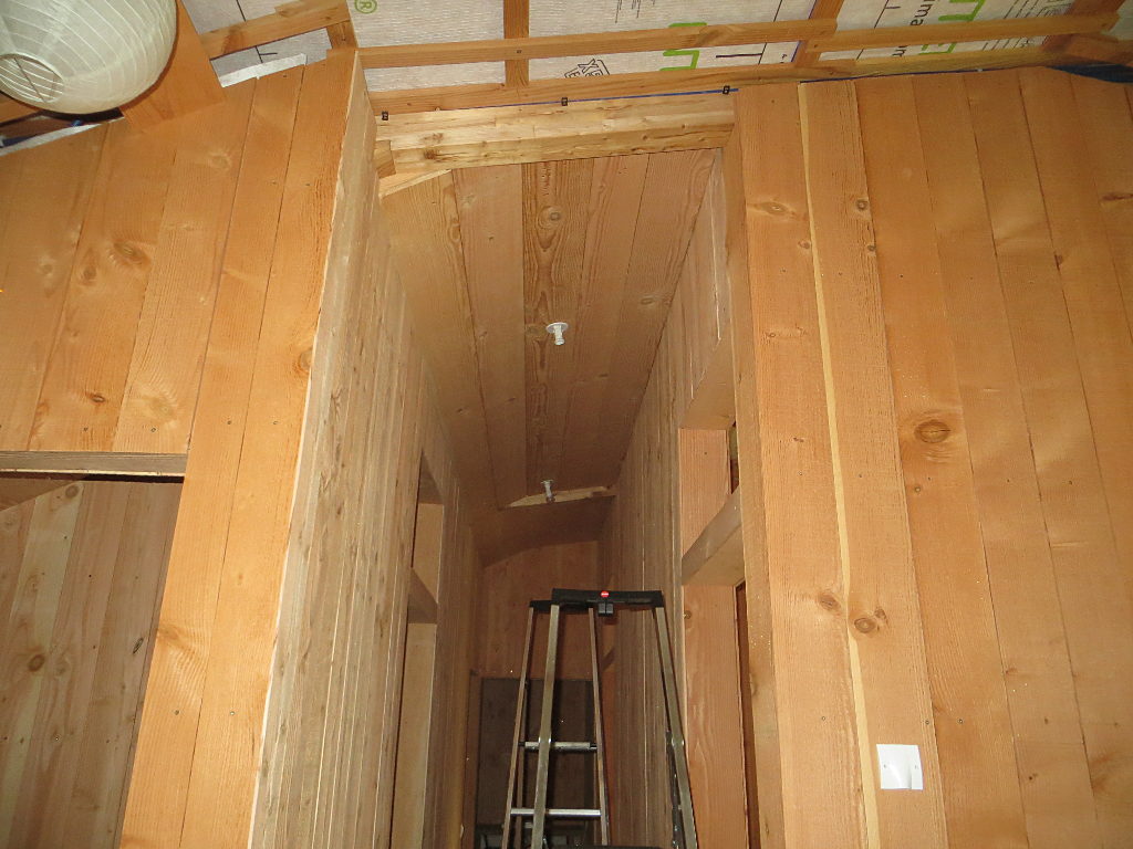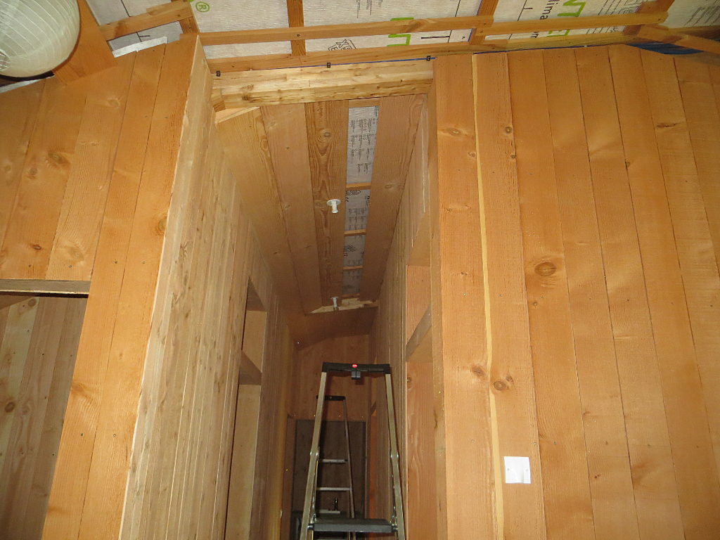 2018/09/05 : Lambris (35) - Couloir (plafond)Mis à jour : 11 novembre 2018 | Imprimer | Affichages : 1946 Dans le couloir, pose du lambris sur le plafond ... Au fond : Côté grande salle : J'en profite pour déplacer les points lumineux.