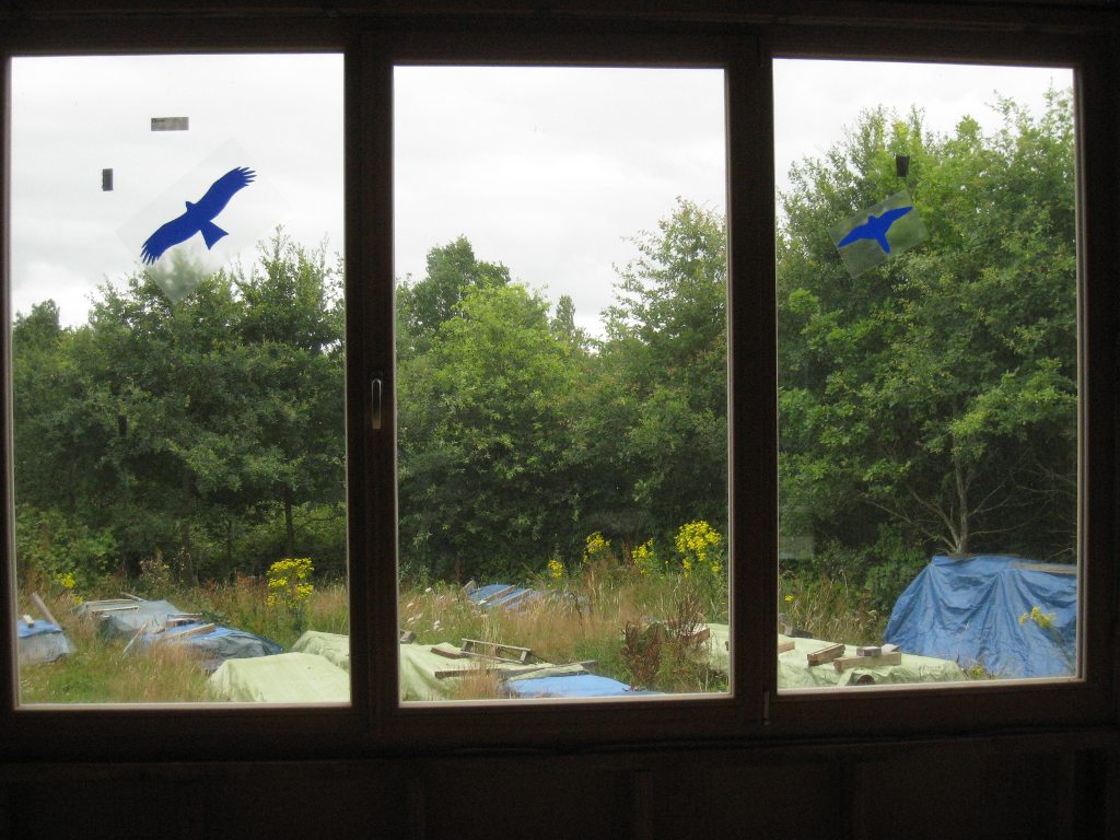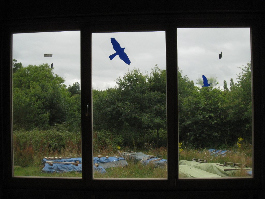 Les oiseaux ayant malheureusement tendance à percuter les baies vitrées, je met en place des silhouettes sensées les éloigner :