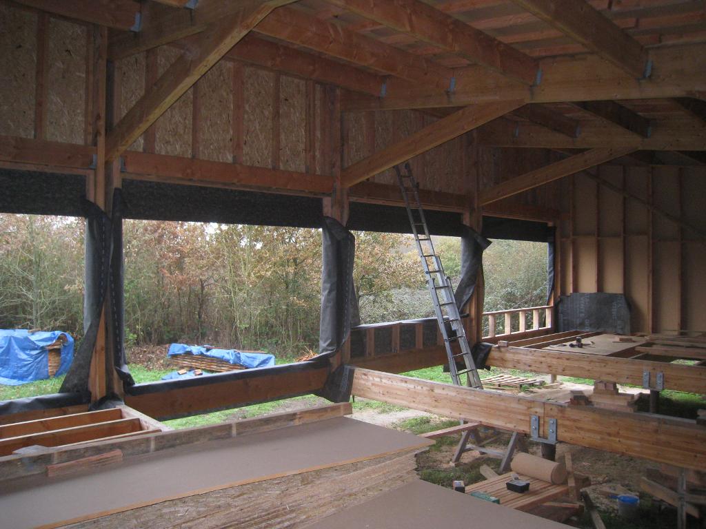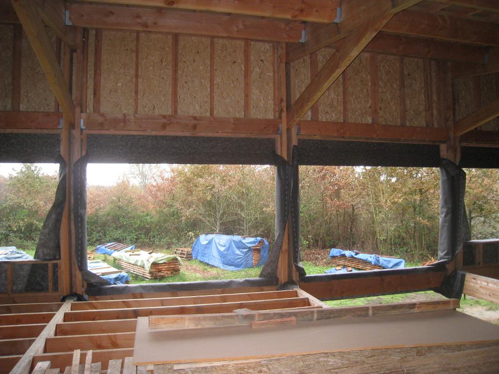 Petite vue d'ensemble des baies et fenêtre Sud, avec les ossatures des murets :