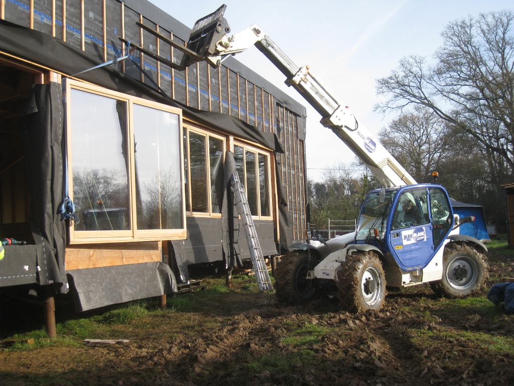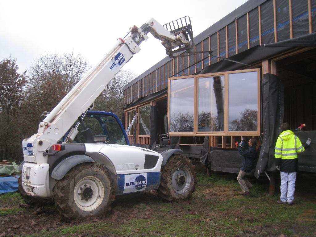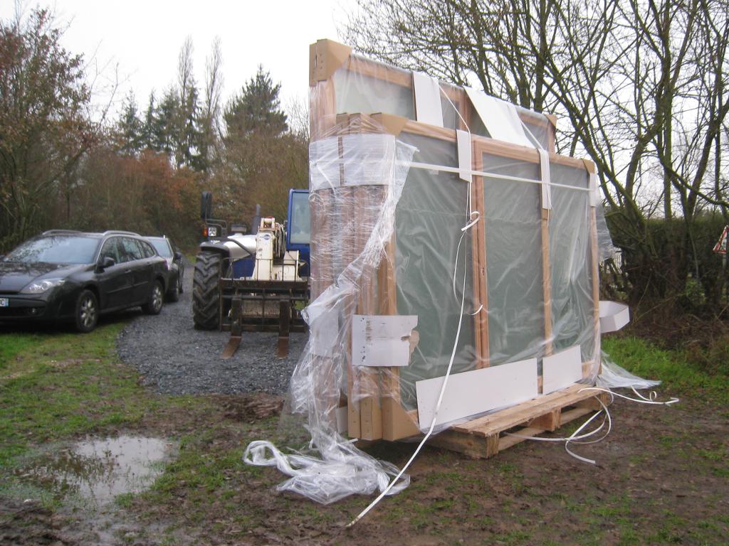 Ce Lundi est un grand jour : dès 8H00, alors que le jour n'est pas encore levé, l'entreprise QueDuBois est à pied d'oeuvre, et le transporteur est aussi au rendez-vous :