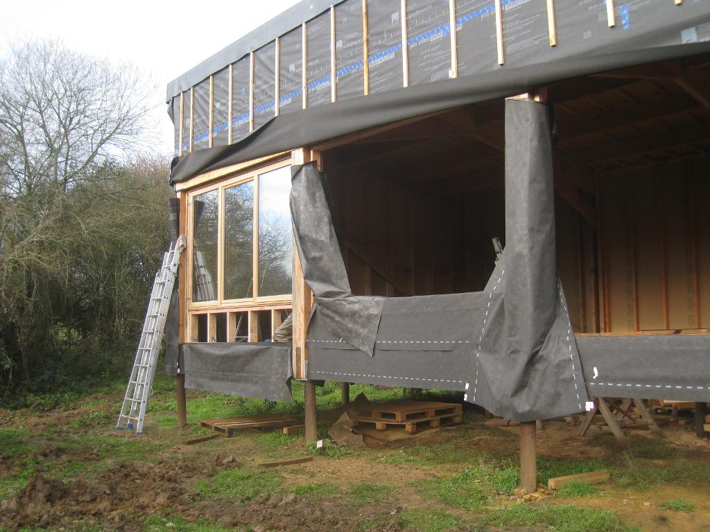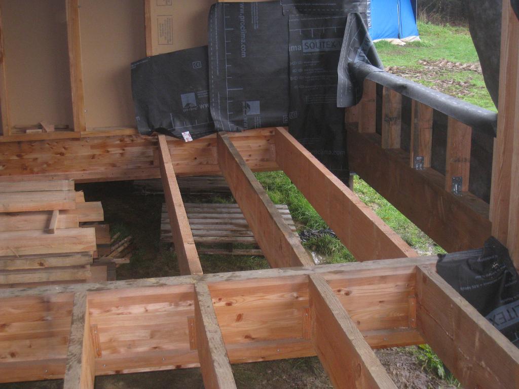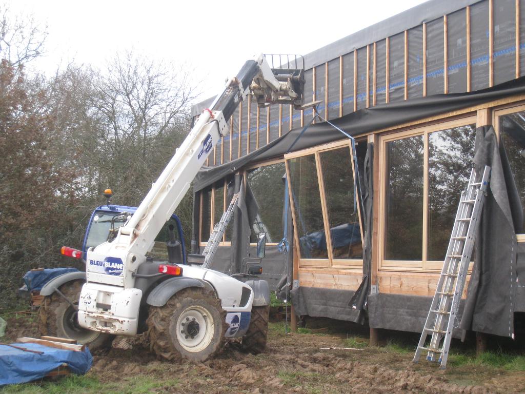 Le temps de poser quelques solives en urgence, histoire de faciliter le travail, et la pose commence :