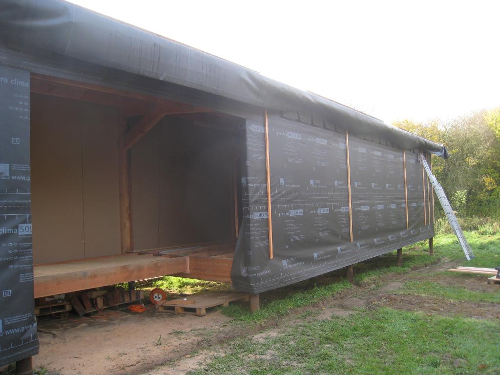 Nous commençons la semaine par un peu de rangement, et la pose de quelques entretoises sur le mur intérieur Nord :