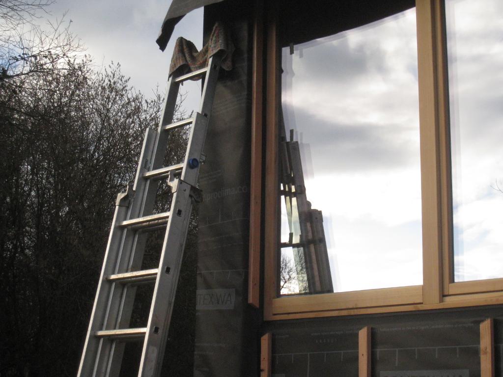 Il s'agit maintenant de finaliser l'étanchéïté entre les menuiseries et le reste des murs.