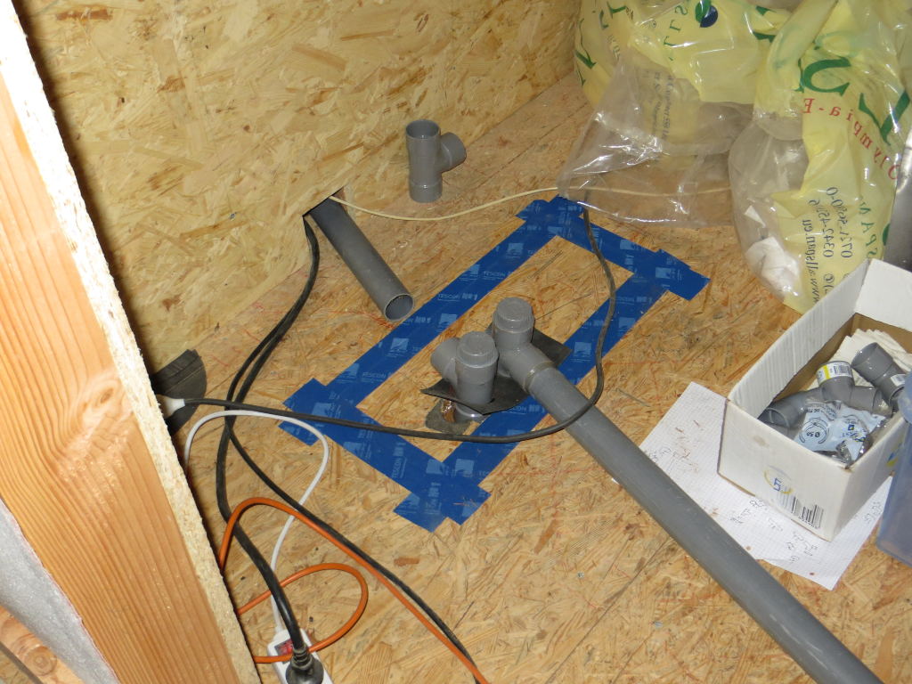 Mise en place du réseau d'évacuation des eaux usées dans le local technique ...