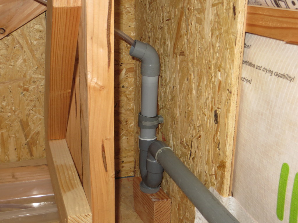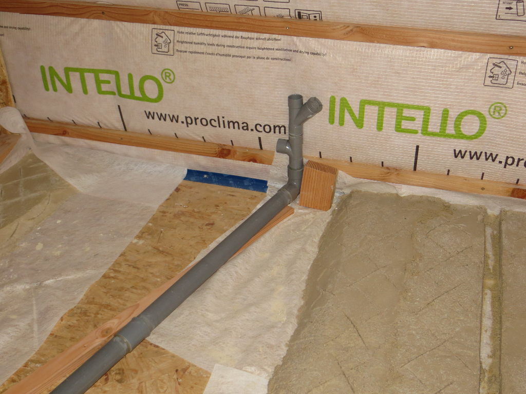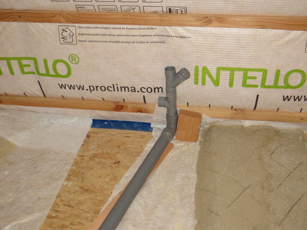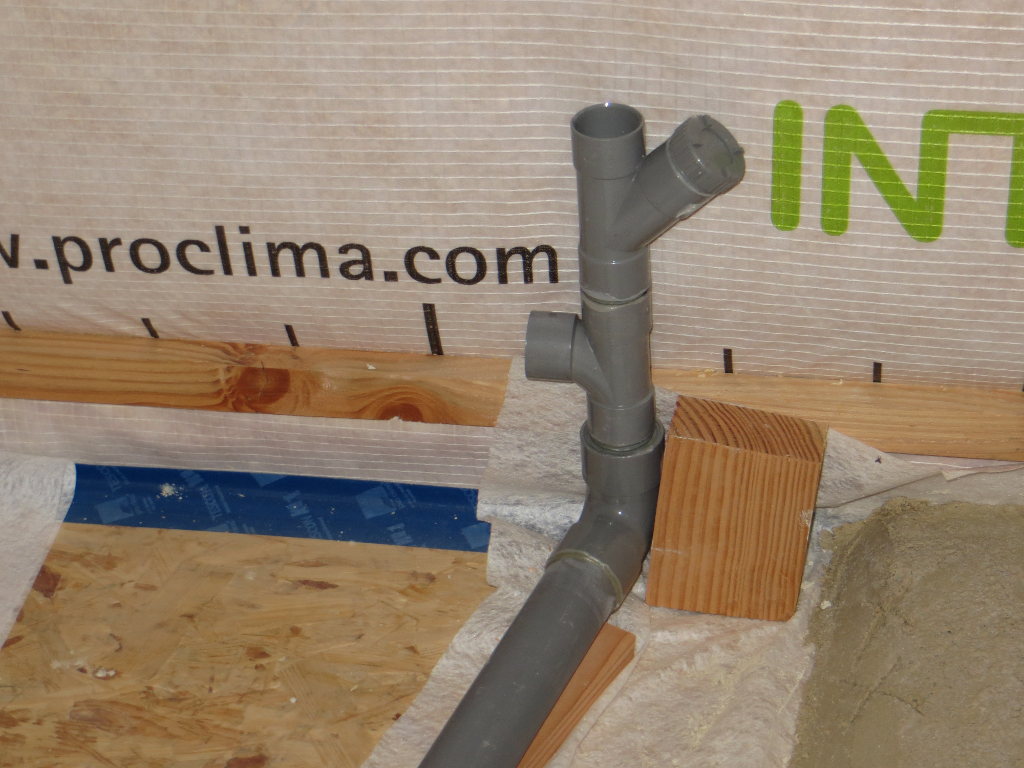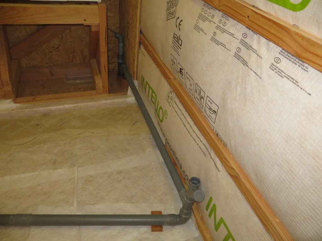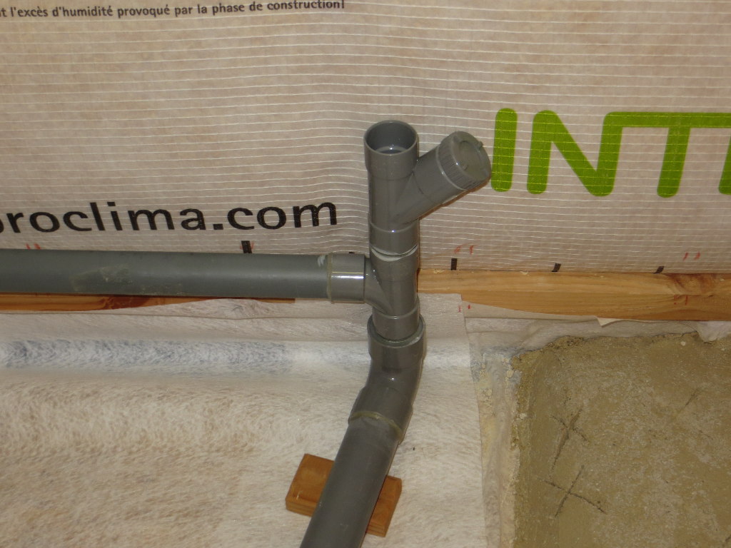 2013/10/07 : Plomberie - Toilettes (1)Mis à jour : 30 novembre 2016 | Imprimer | Affichages : 2550 Mise en place de l'évacuation des eaux usées des toilettes sèches ... D'abord pour le futur lave-main : Ensuite pour l'évacuation des condensats de la VMC-DF : Précédent Suivant