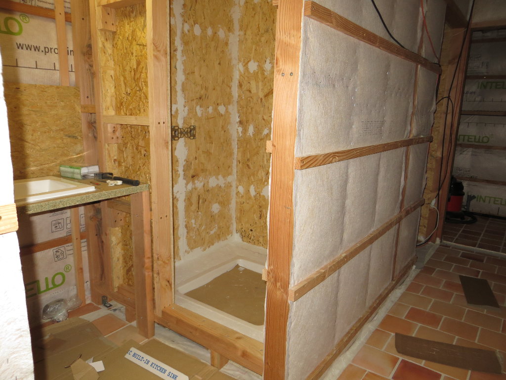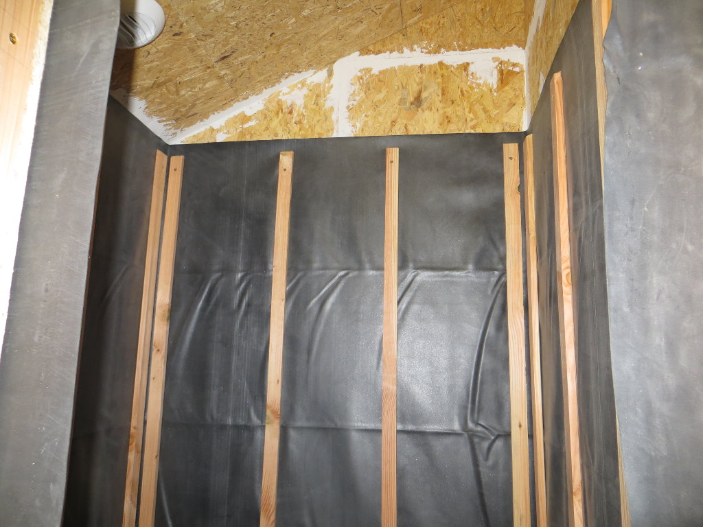 Réalisation de l'étanchéité en EPDM des murs de la douche :