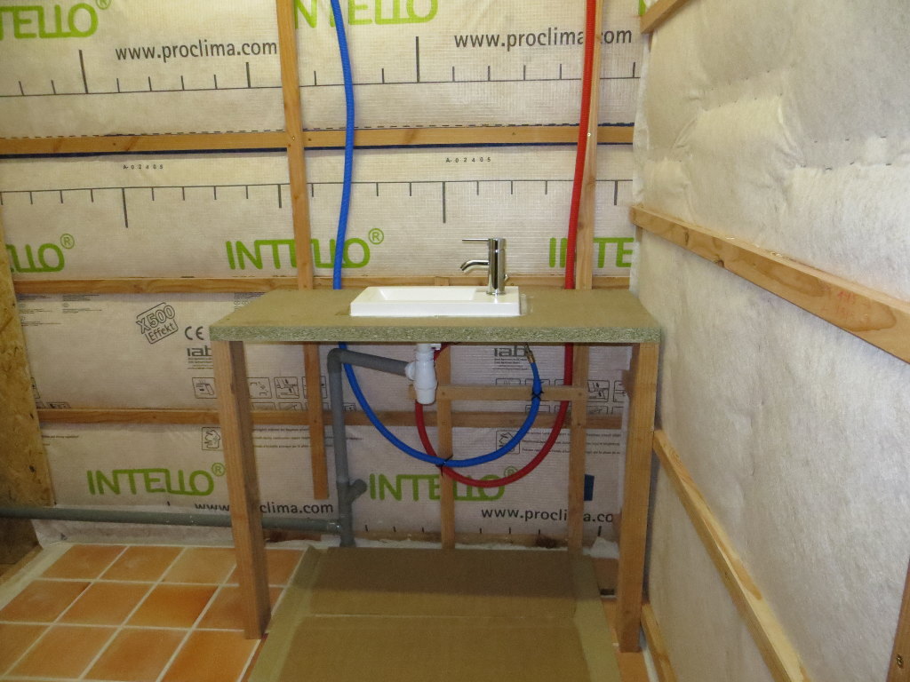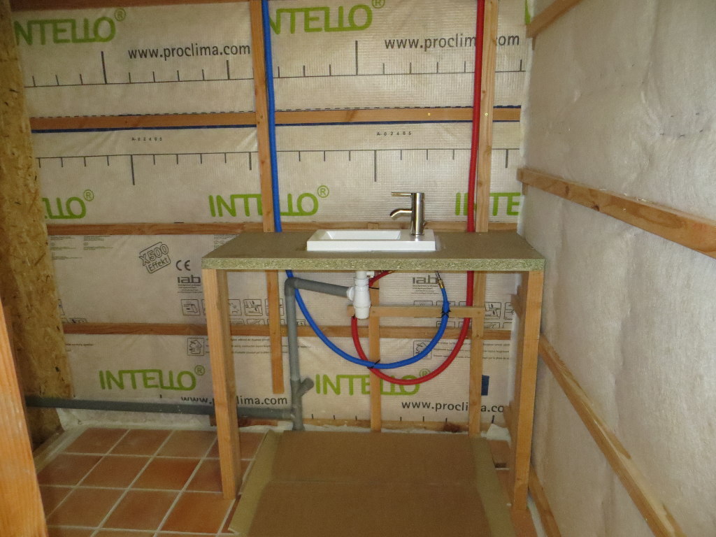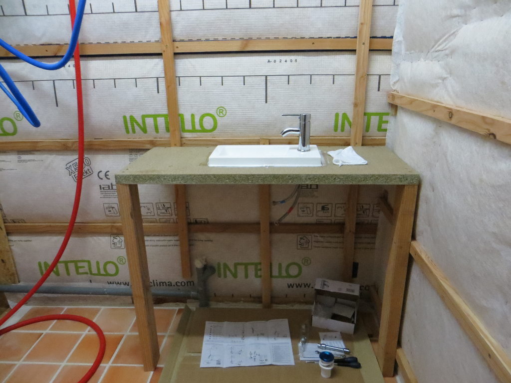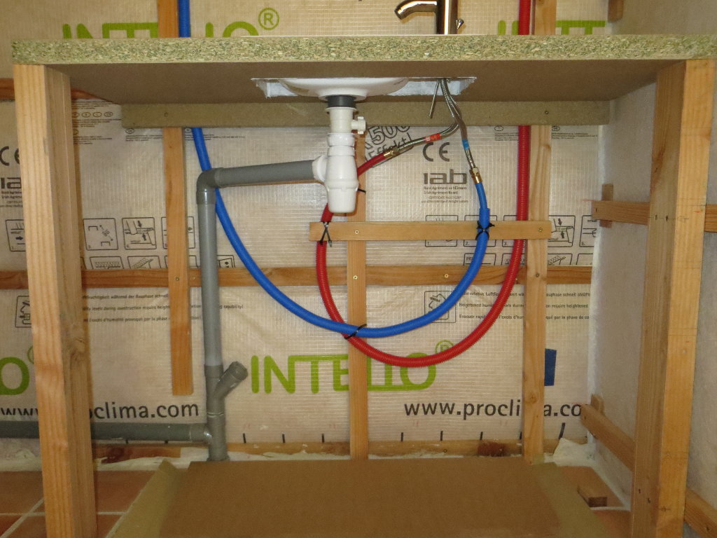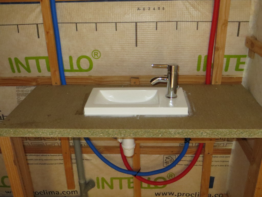 2015/02/20 : Plomberie - Toilettes (2)Mis à jour : 1 décembre 2016 | Imprimer | Affichages : 1918 Préparation du lave-main dans les toilettes sèches ... Préparation du meuble qui supporte le lave-main : Raccordements du lave-main : Quelques détails :