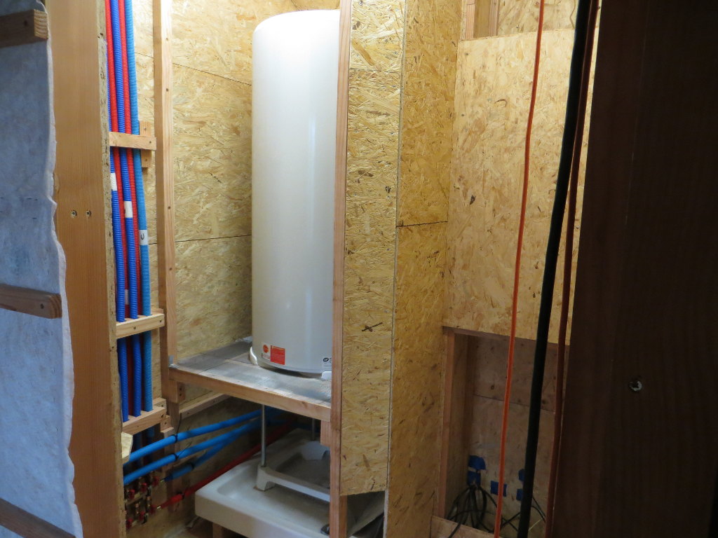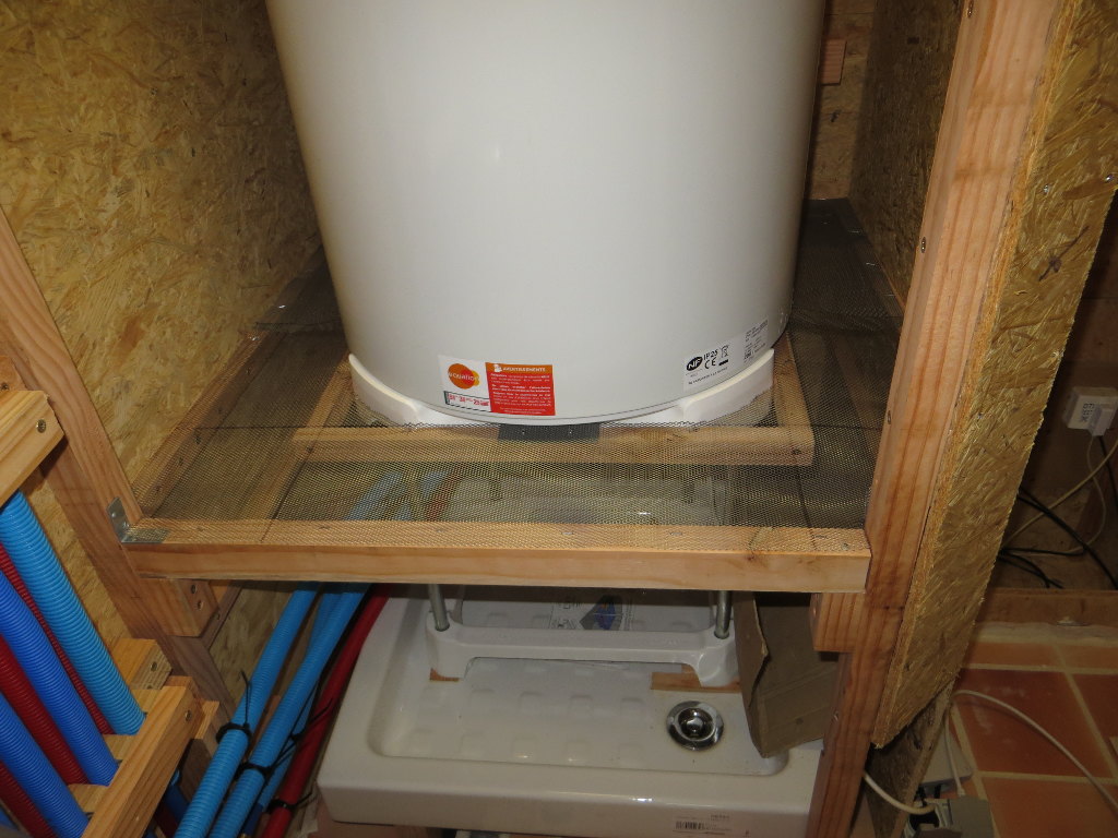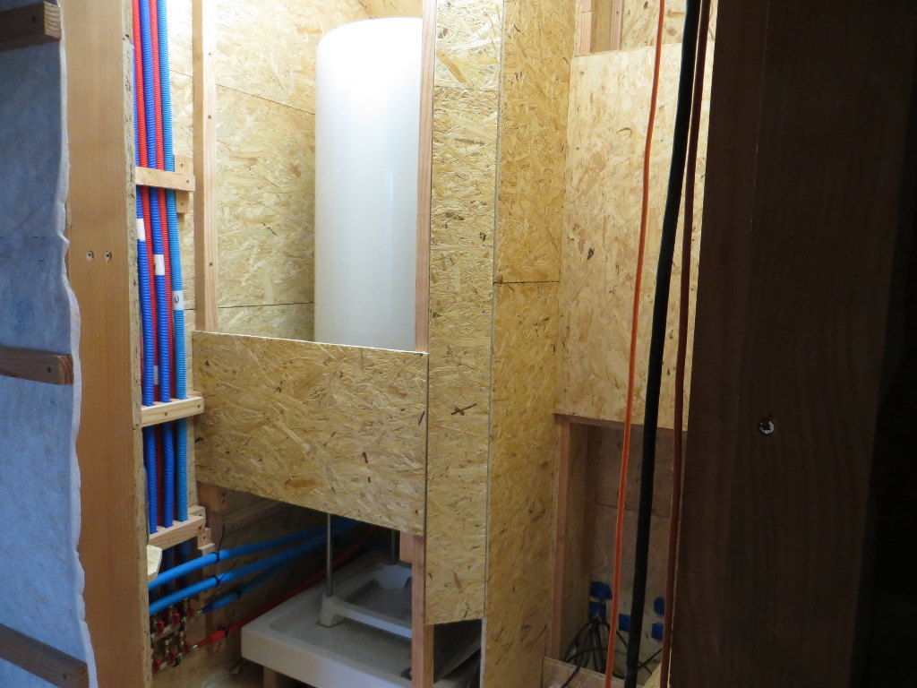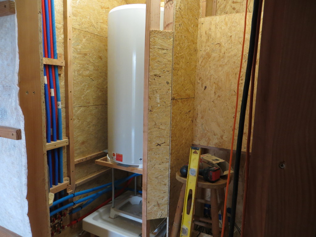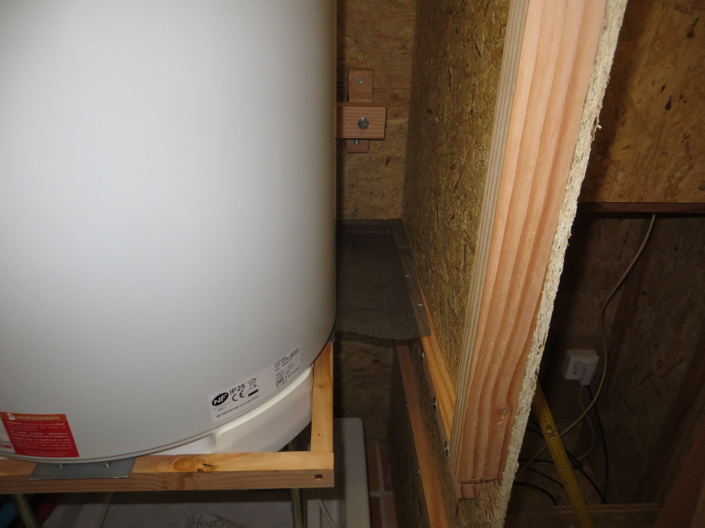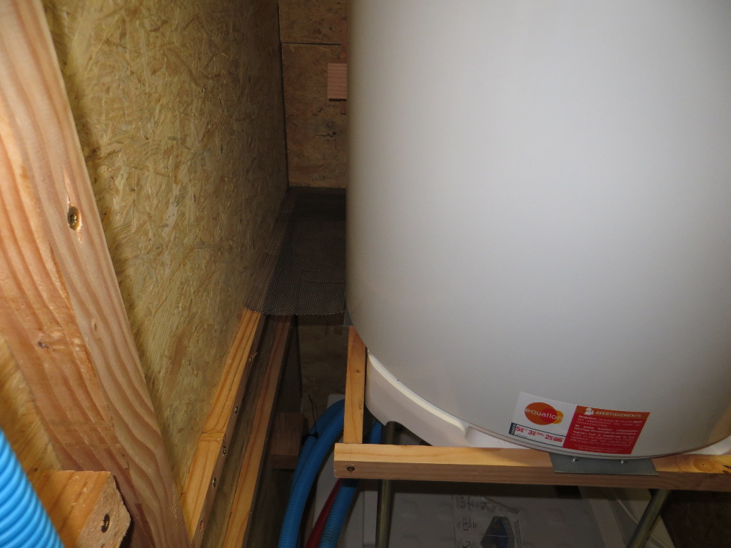 J'ai donc décidé de sur-isoler mon chauffe-eau en ajoutant un minimum de 15 cm d'isolant tout autour, et 30 cm au dessus ...