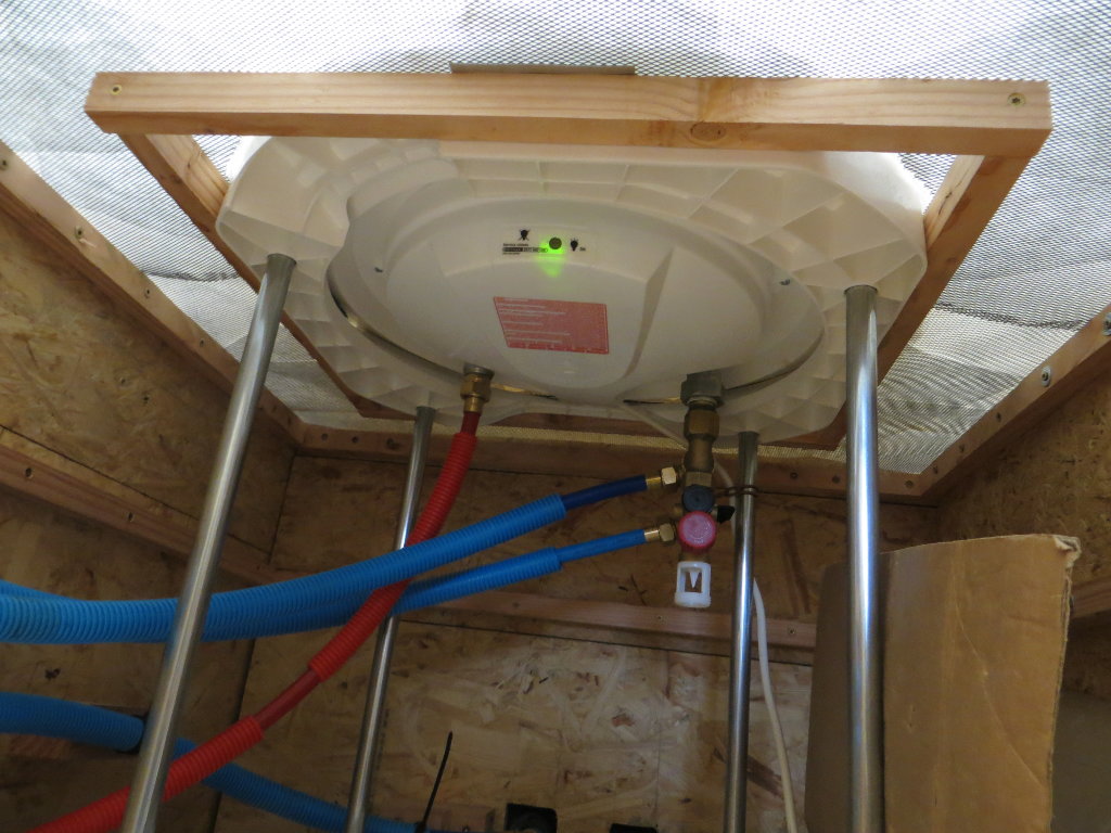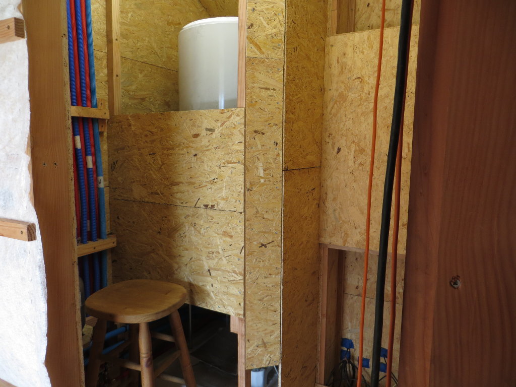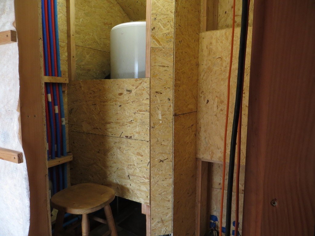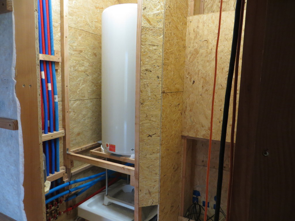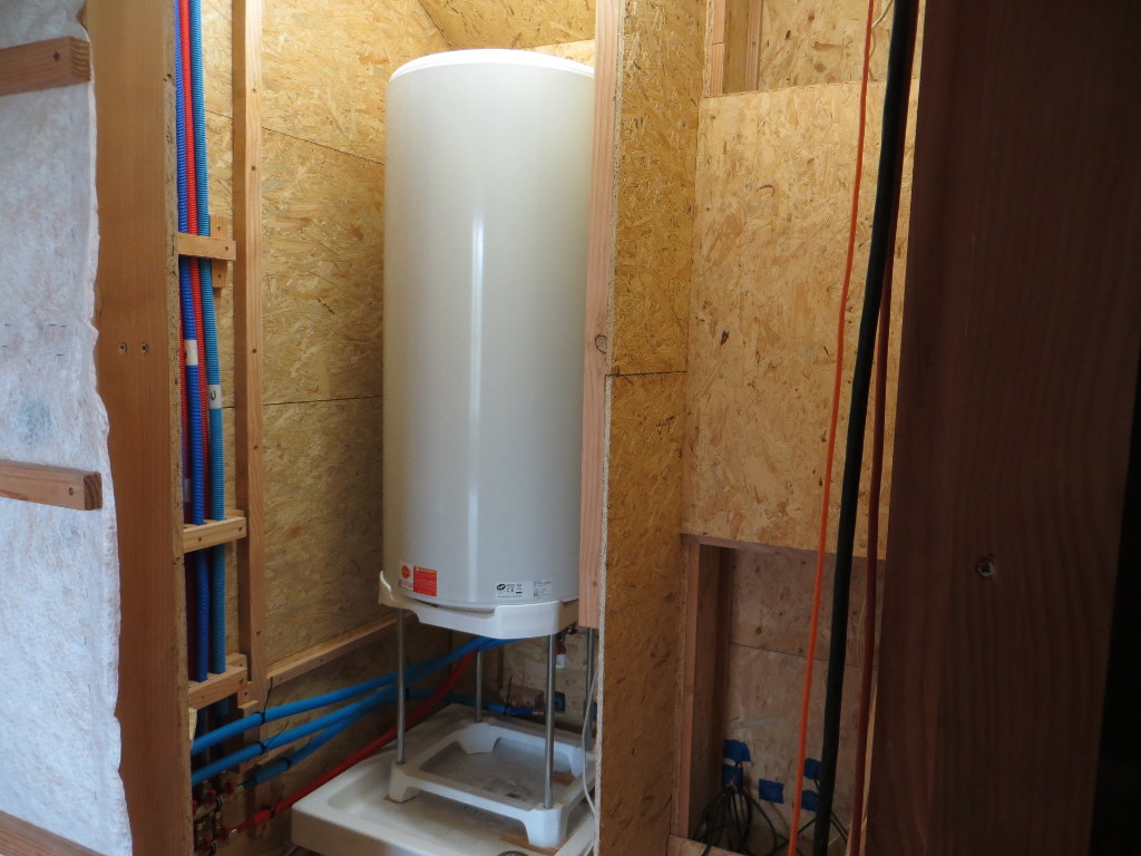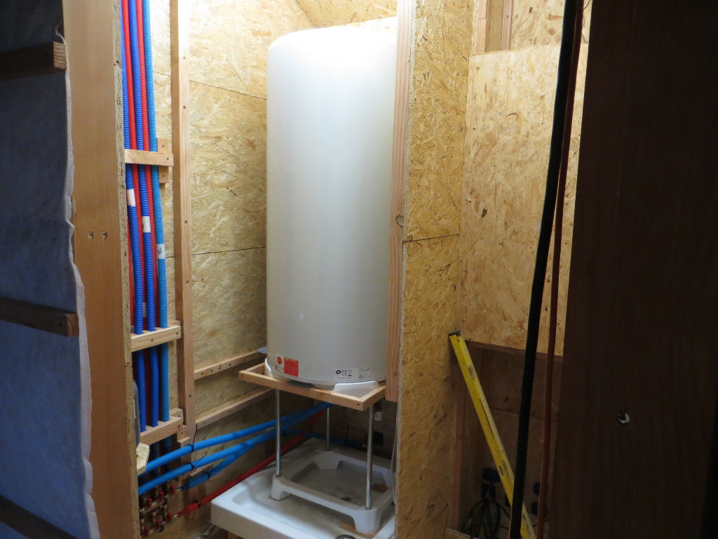 J'ai donc décidé de sur-isoler mon chauffe-eau en ajoutant un minimum de 15 cm d'isolant tout autour, et 30 cm au dessus ...