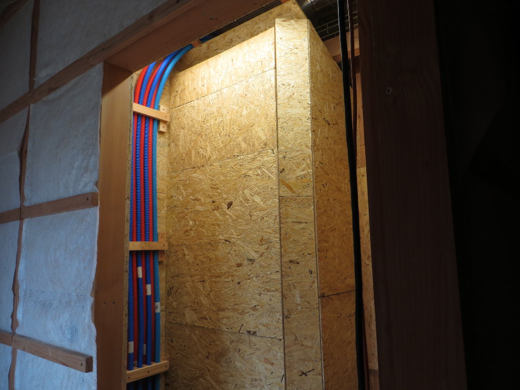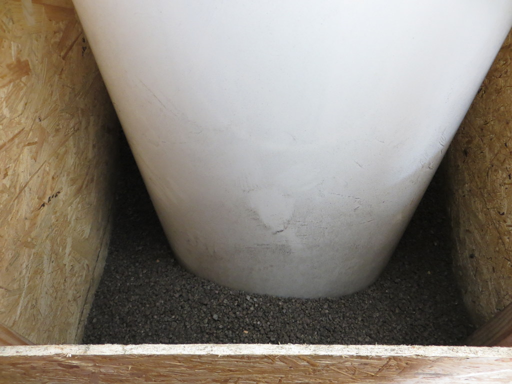 Remplissage de l'isolant (liège expansé et copeaux de bois) :