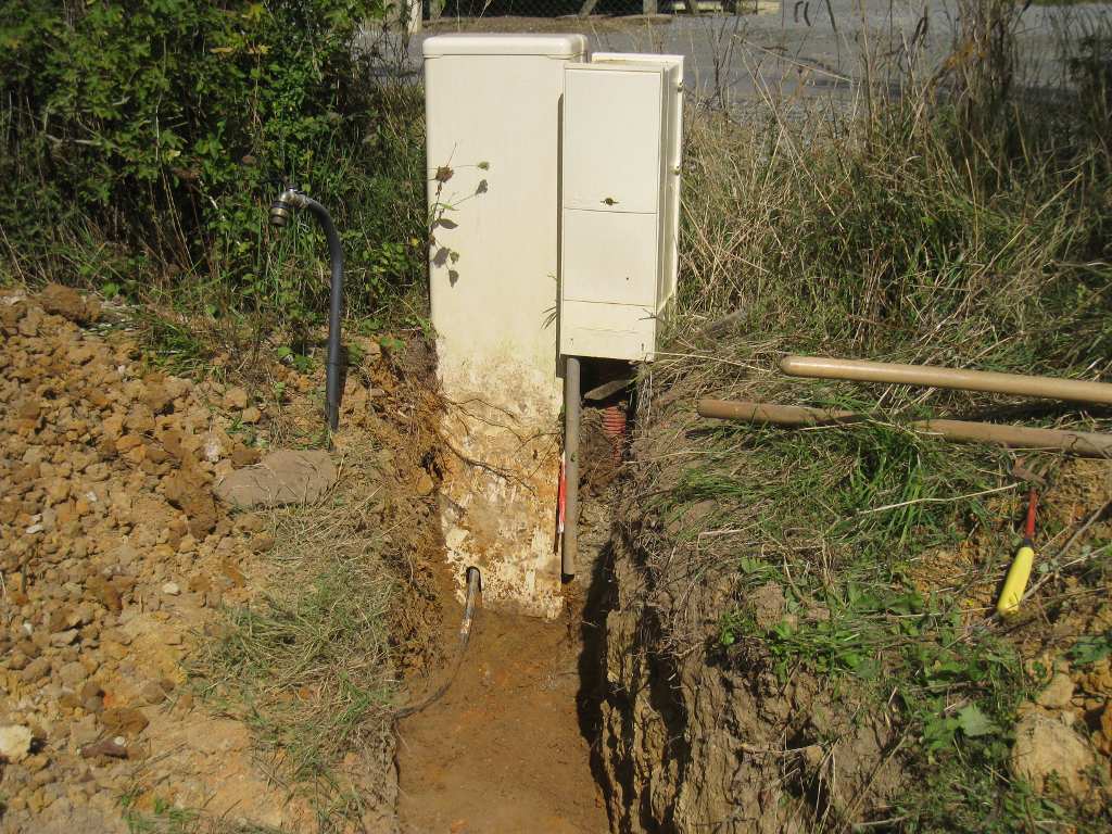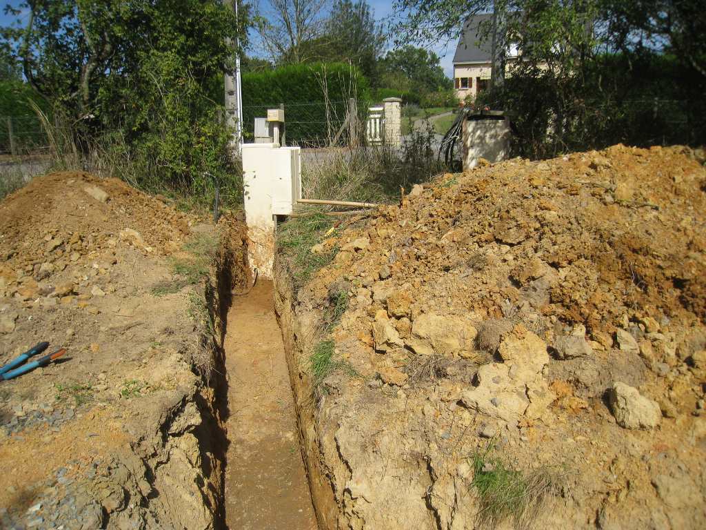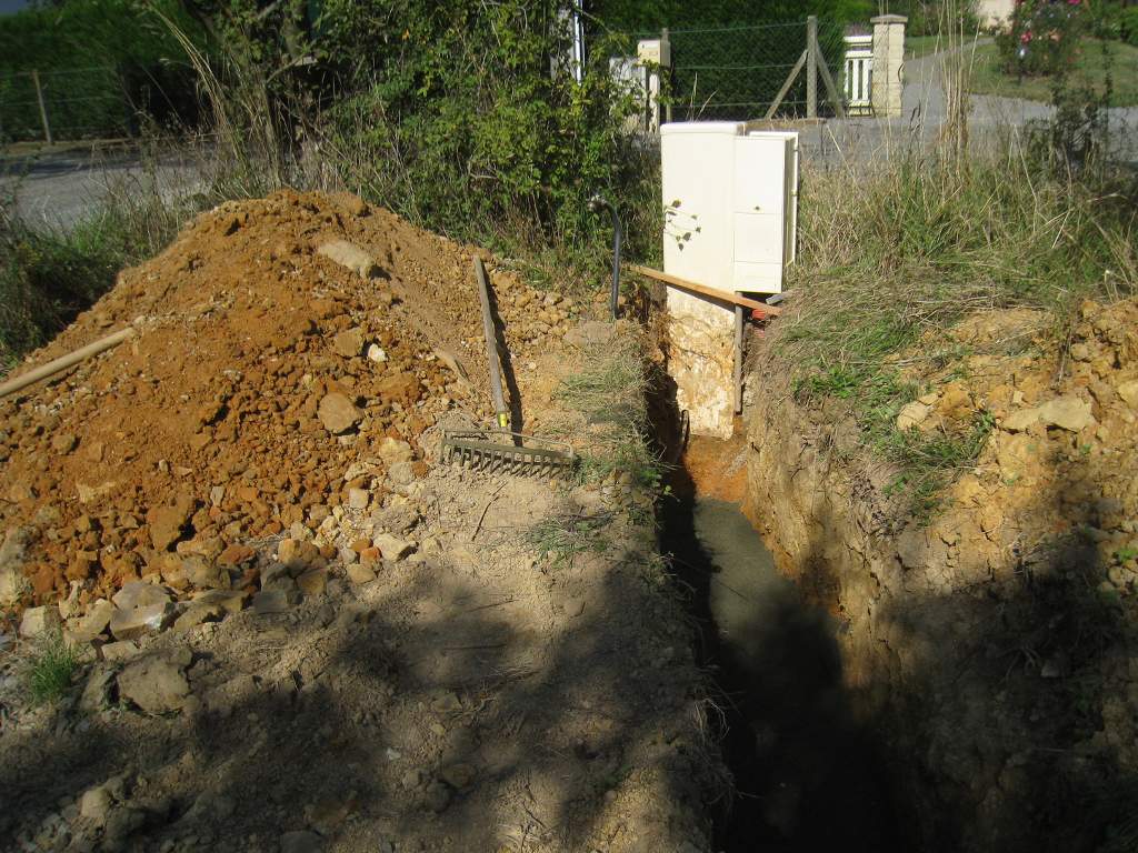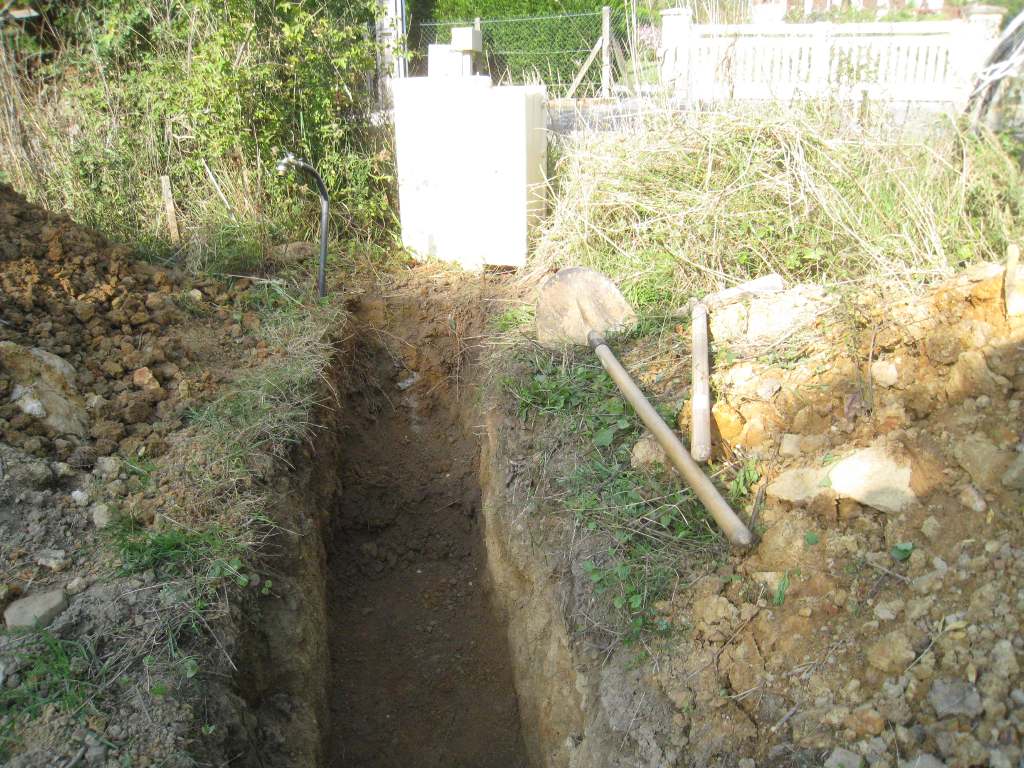 Puis je prolonge la tranchée jusqu'aux boitiers d'eau et d'électricité en limite de terrain :