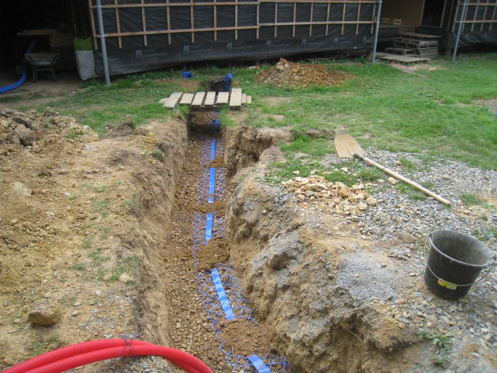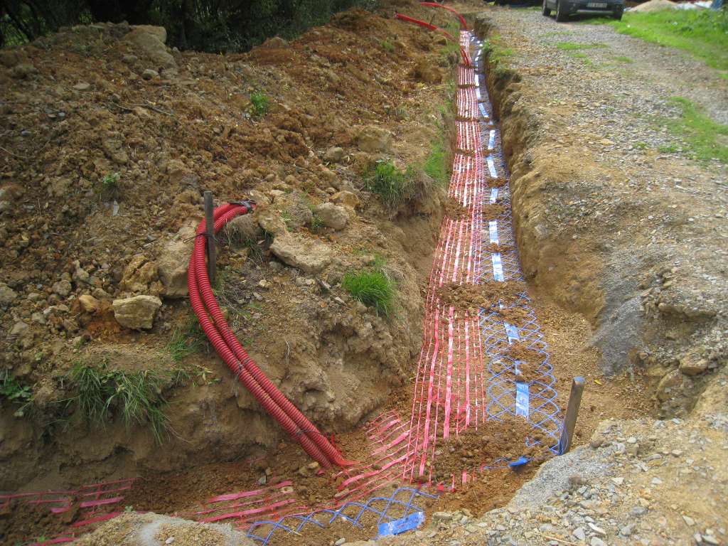 2011/09/19 : Réseaux (8)Mis à jour : 23 février 2016 | Imprimer | Affichages : 2224Pose des filets avertisseurs dans la tranchée, à partir de l'entrée : Jusqu'à la maison : Il ne reste plus cette fois qu'à reboucher : j'y consacrerai environ une heure chaque matin ... Précédent Suivant