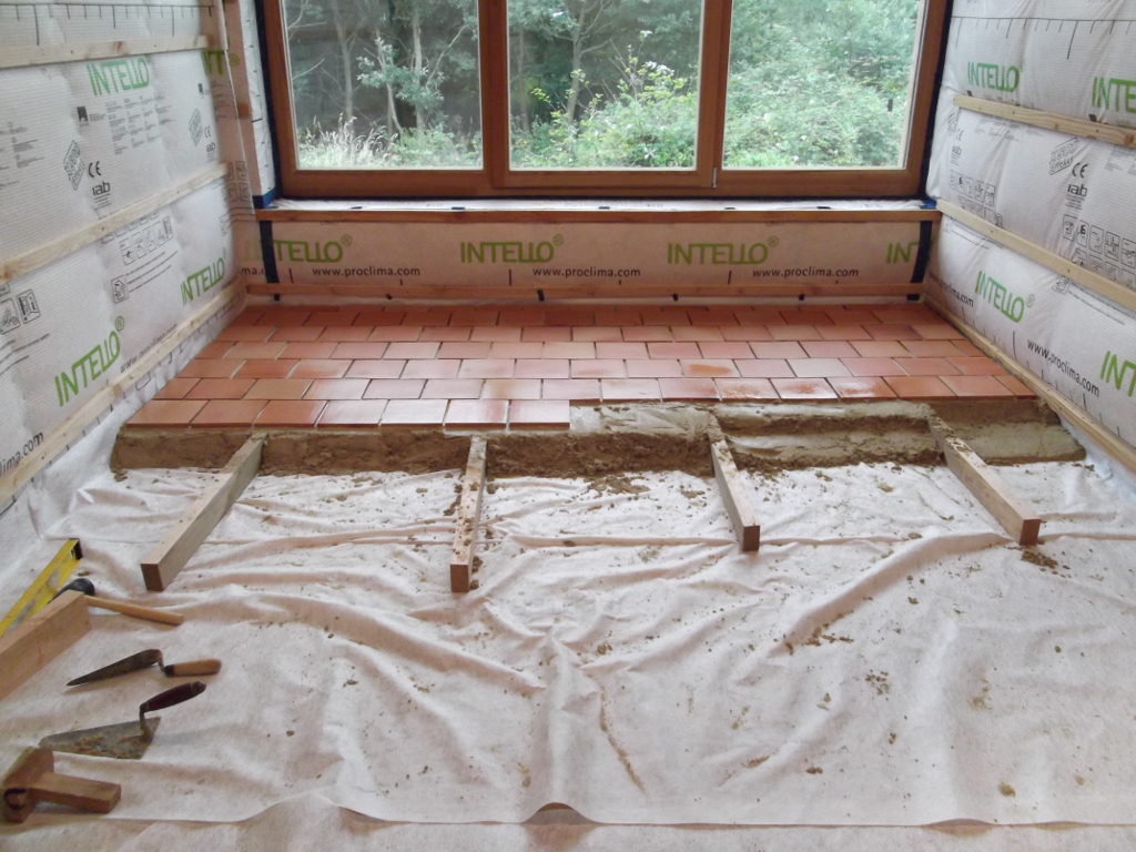 2013/09/24 : Sol - Chambre n°1Mis à jour : 24 février 2016 | Imprimer | Affichages : 2331Pose de la chappe et des tomettes dans la chambre n°1 : L'avancée du travail : Les joints restent à faire ... Précédent Suivant