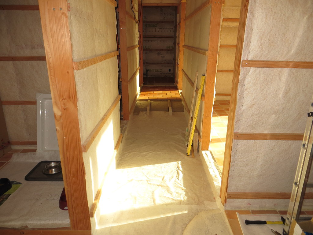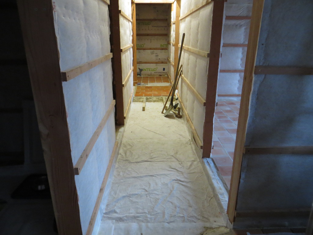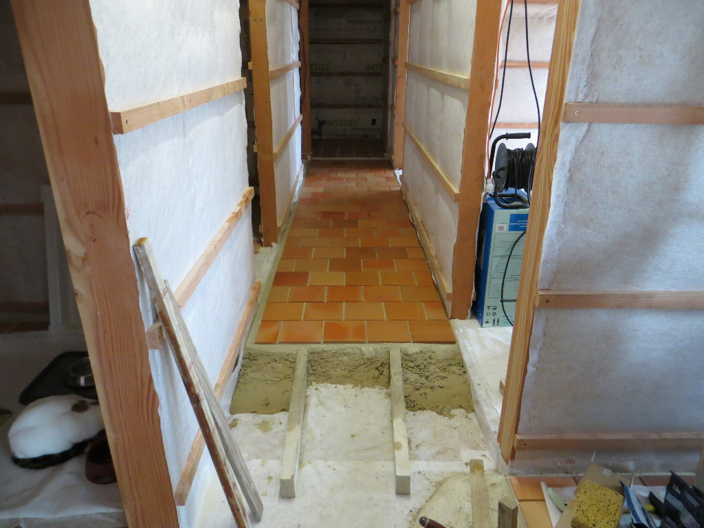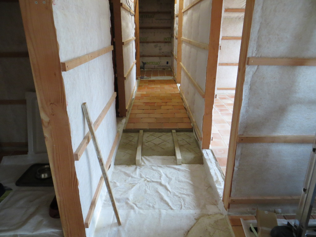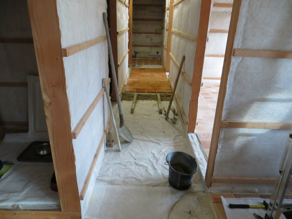 2013/11/27 : Sol - CouloirMis à jour : 24 février 2016 | Imprimer | Affichages : 2349Pose de la chappe et des tomettes dans le couloir : Avancée du travail :