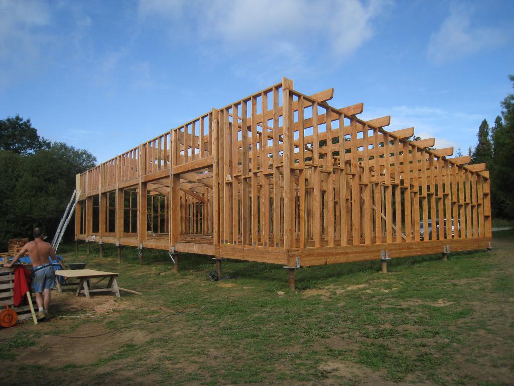 2010/09/11 : Murs sur LinteauxMis à jour : 22 novembre 2016 | Imprimer | Affichages : 2551 Mise el place de l'ossature des murs MOB au dessus des linteaux ... Il reste maintenant à assembler les murs sur les linteaux : En détail : Qu'on habille dans la foulée avec des panneaux d'OSB4 :