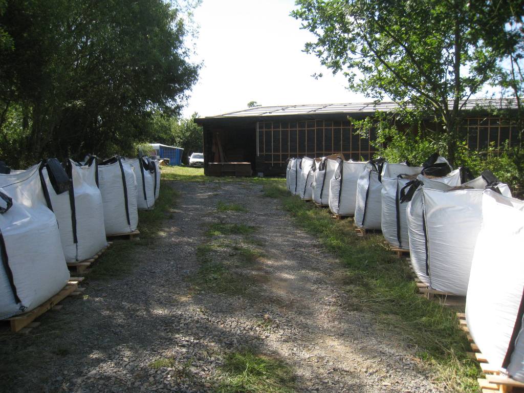 Le substrat de la toiture végétale (mélange de 50% terre végétale et 50% pouzzolane) est livré en 16 big-bags :