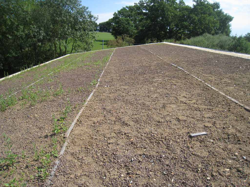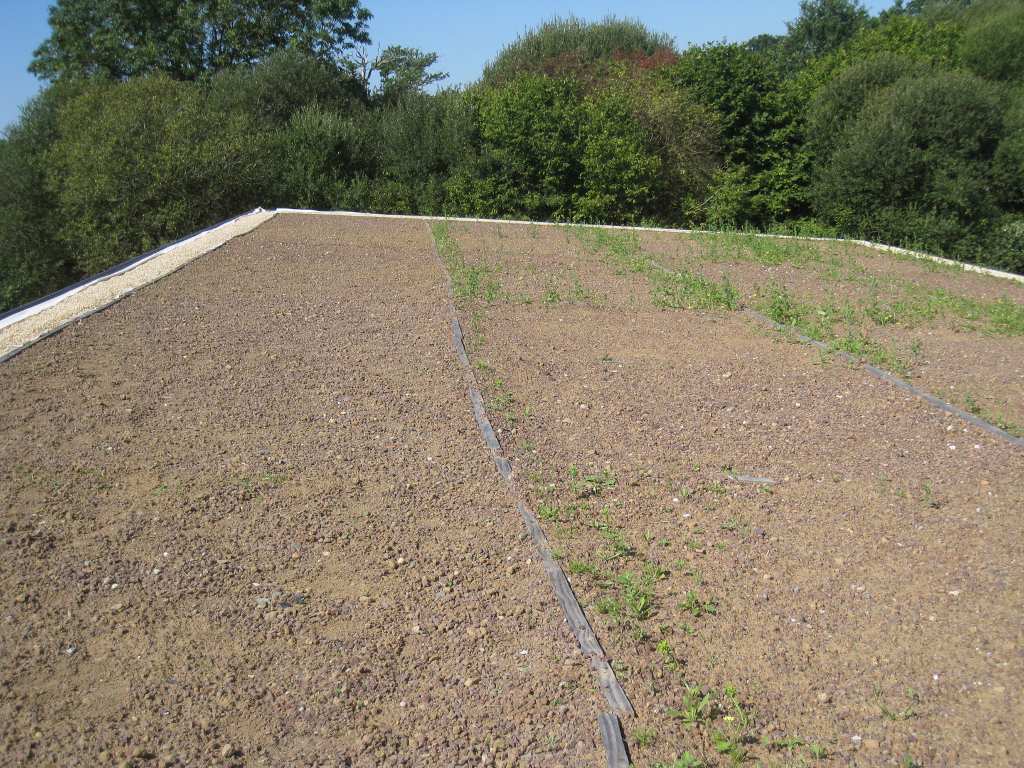 Le substrat végétal de la toiture contenait forcément quelques graines qui, avec l'humidité de cet été, en ont profité pour germer :