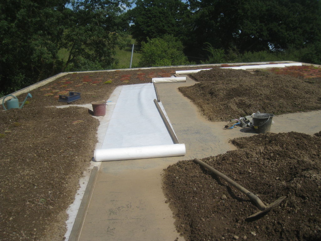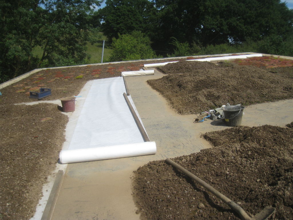 2013/06/15 : Toiture (19) : CorrectionMis à jour : 24 février 2016 | Imprimer | Affichages : 2298Suite de la pose du géotextile (rouleaux n°1 à n°4) : Du côté Est : Du côté Ouest :