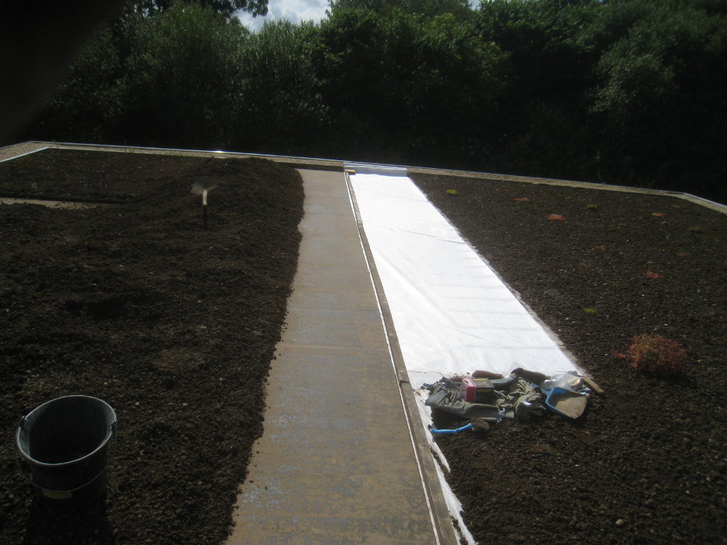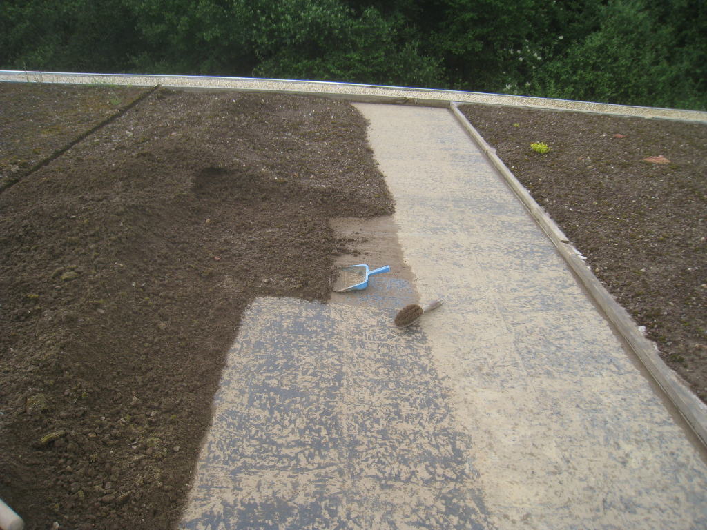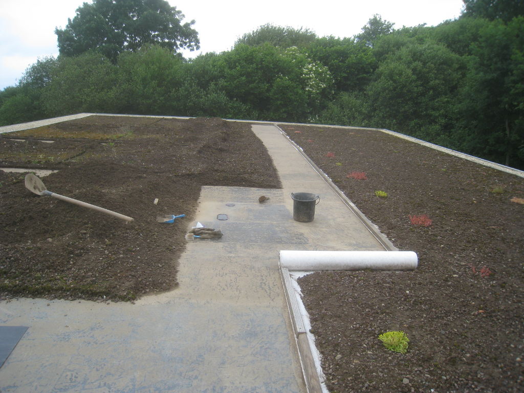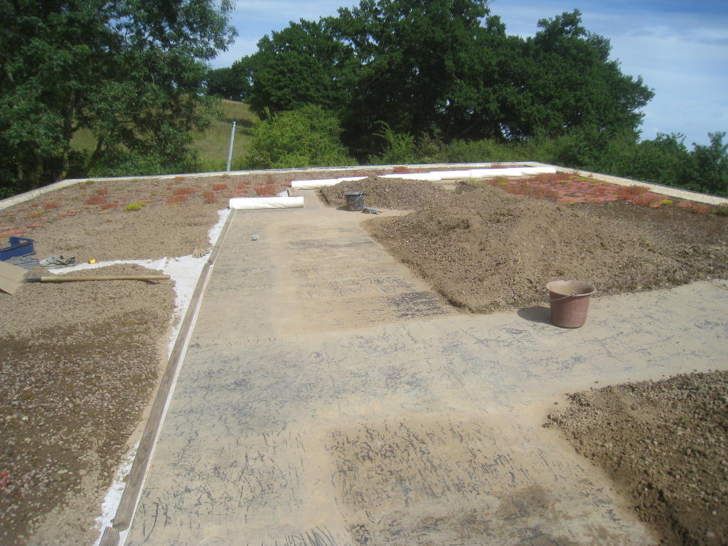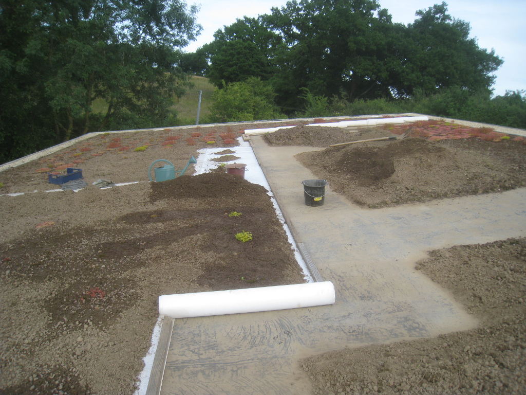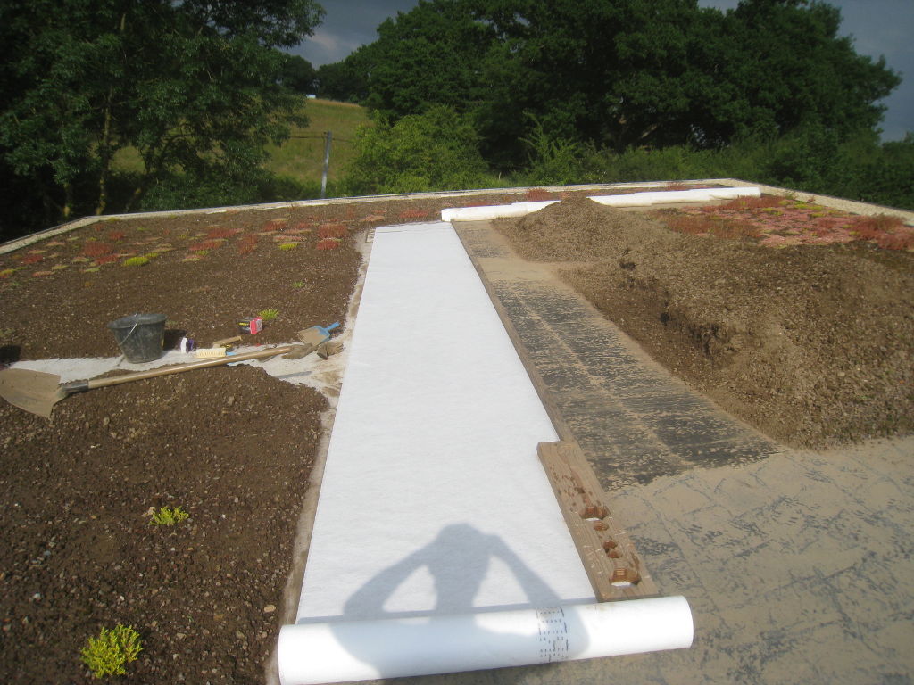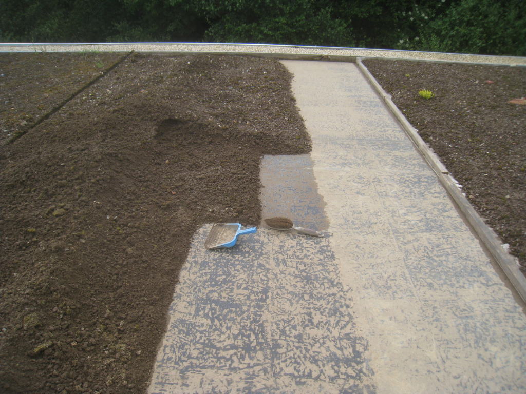 2013/06/30 : Toiture (20) : CorrectionMis à jour : 24 février 2016 | Imprimer | Affichages : 2014Suite de la pose du géotextile (rouleaux n°5 à n°7) : Du côté Est : Du côté Ouest : Détail du décapage de la bâche EPDM : Au moindre doute (impact ou autre) :