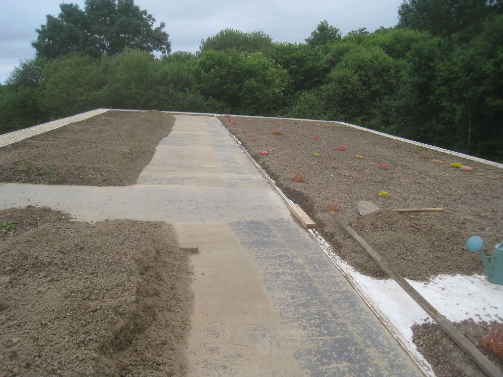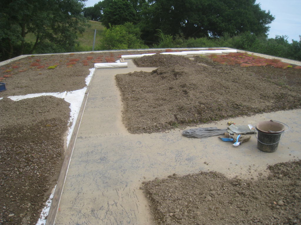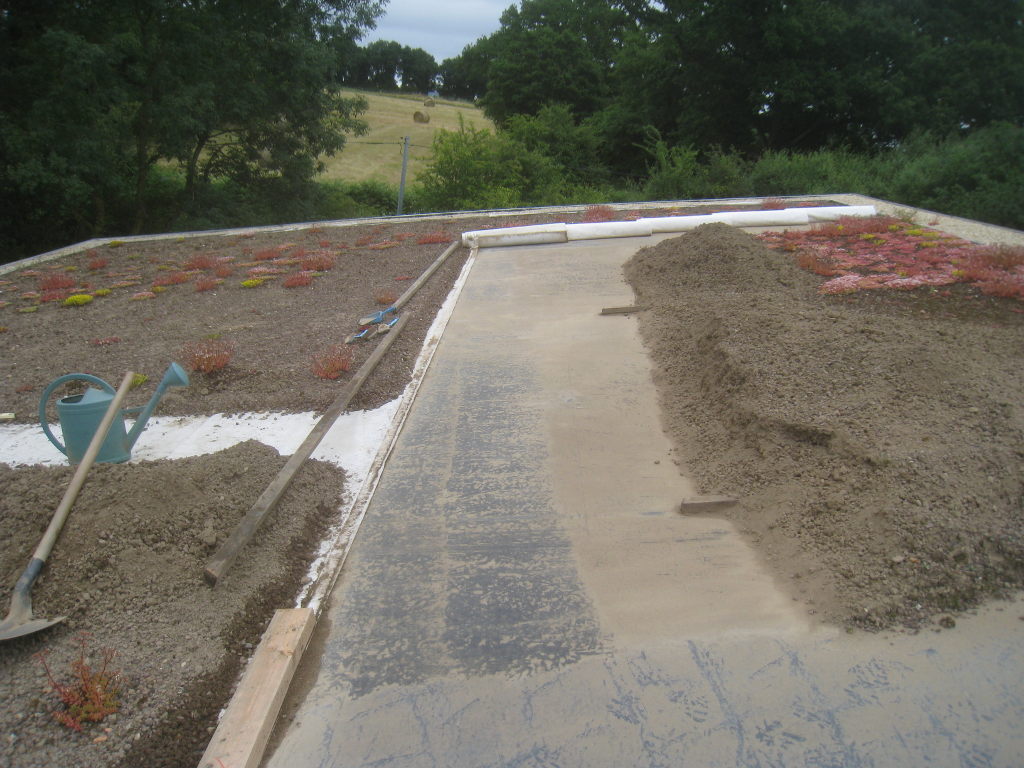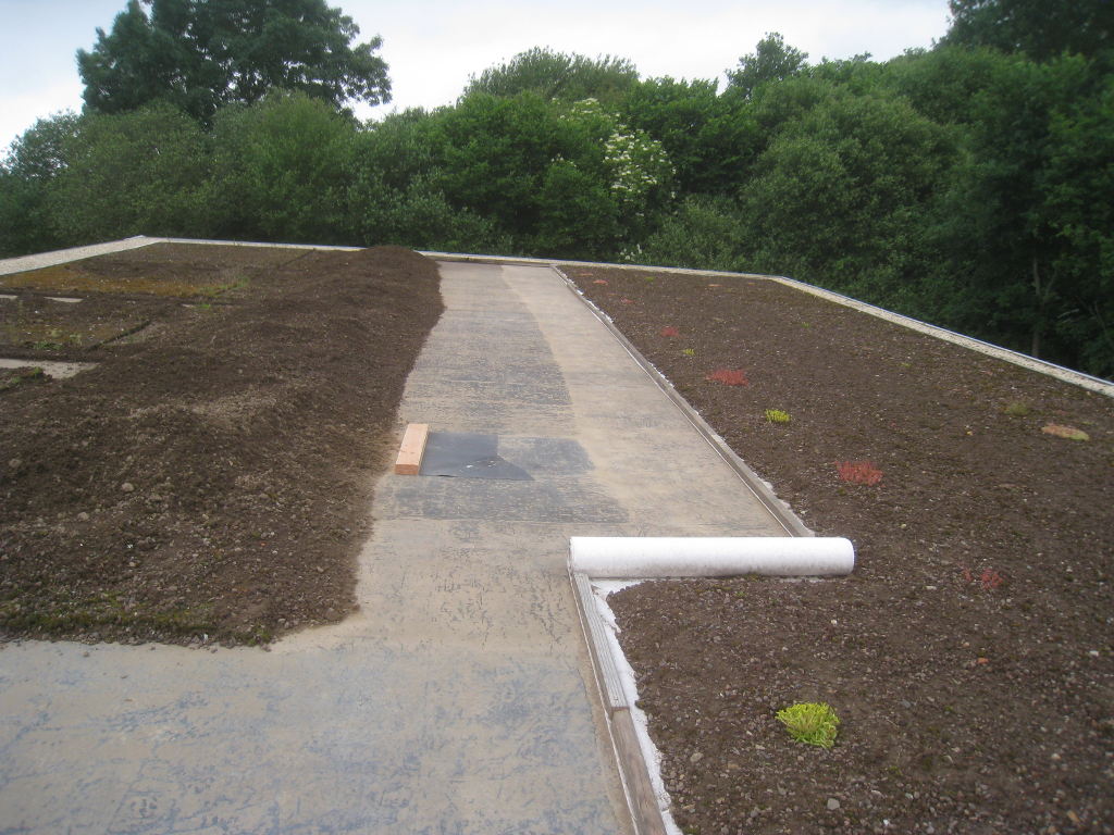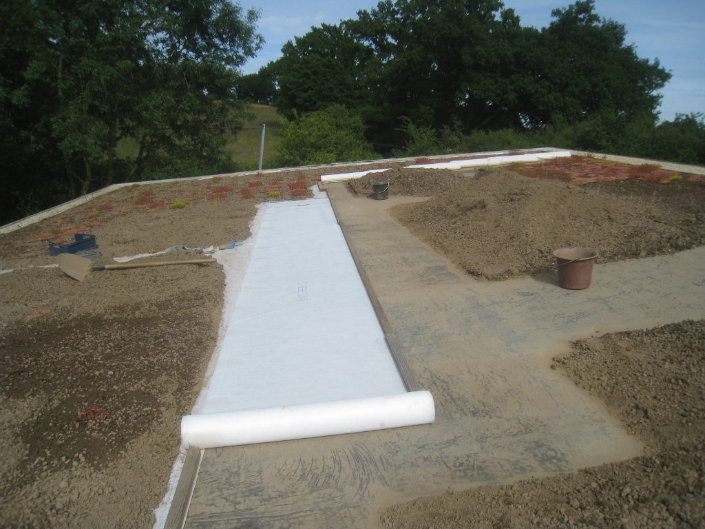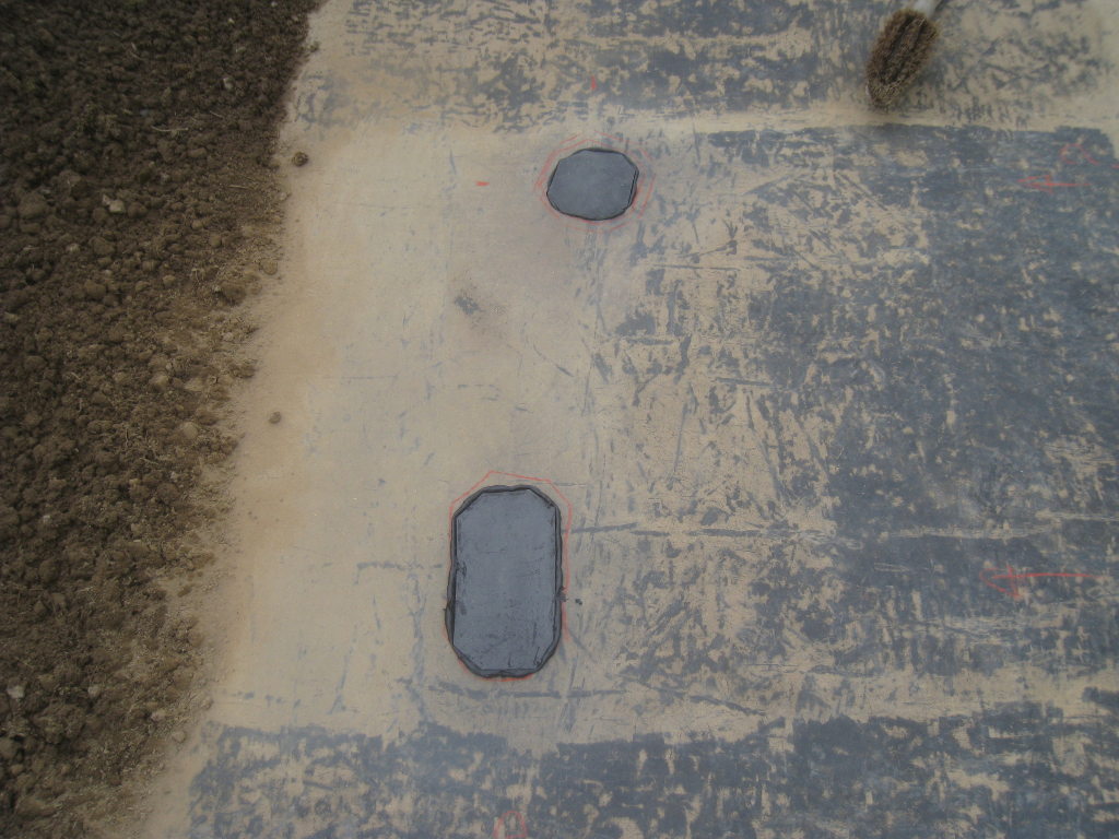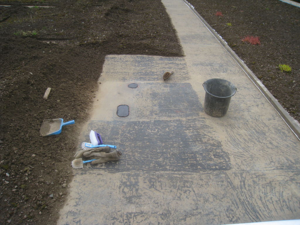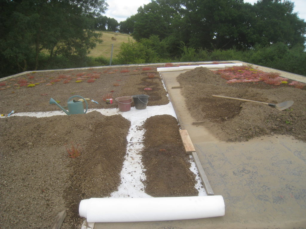2013/06/30 : Toiture (20) : CorrectionMis à jour : 24 février 2016 | Imprimer | Affichages : 2014Suite de la pose du géotextile (rouleaux n°5 à n°7) : Du côté Est : Du côté Ouest : Détail du décapage de la bâche EPDM : Au moindre doute (impact ou autre) :