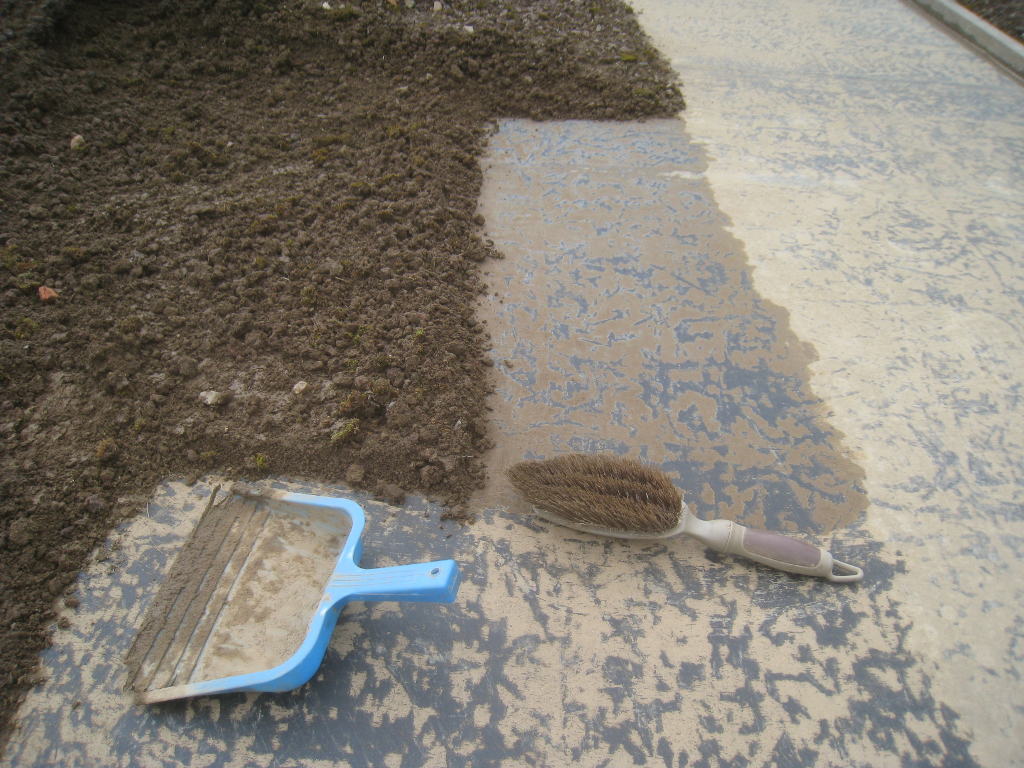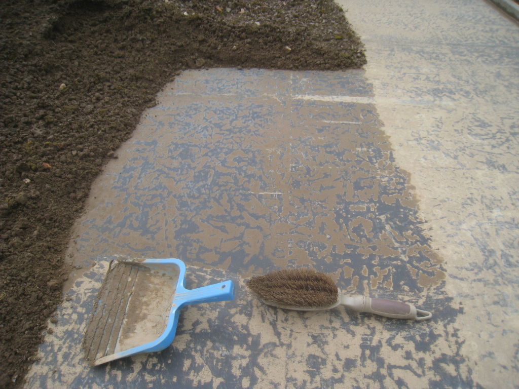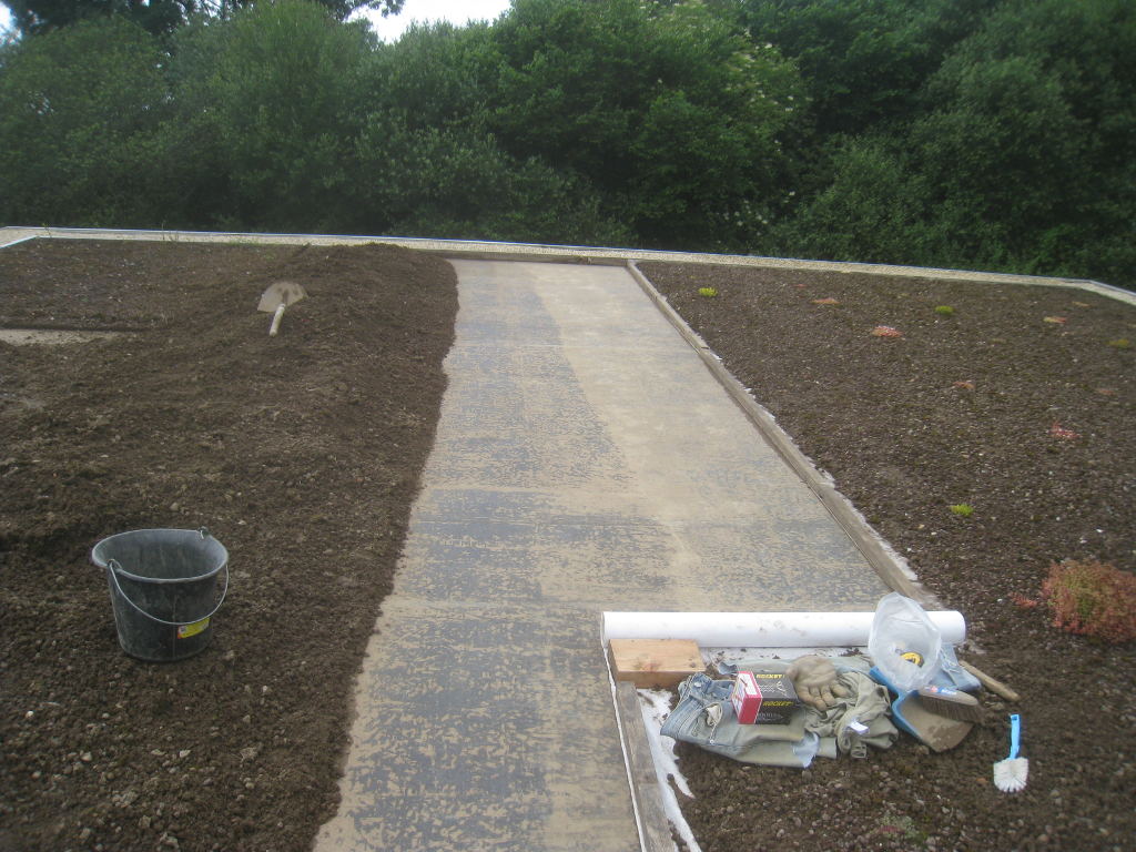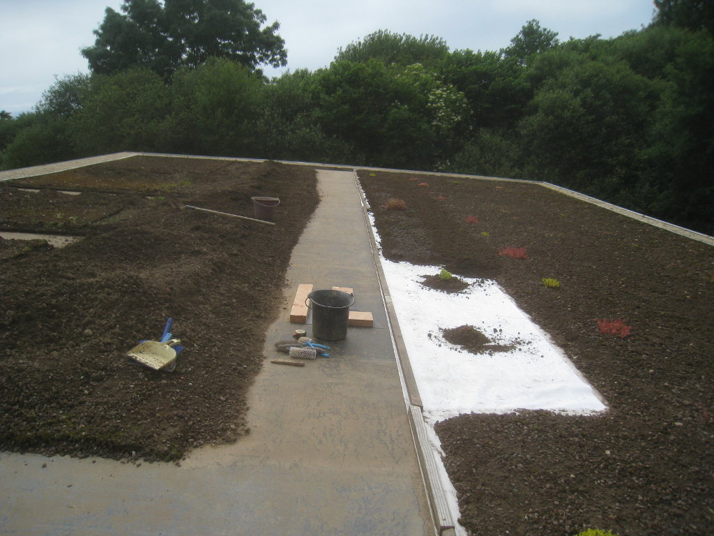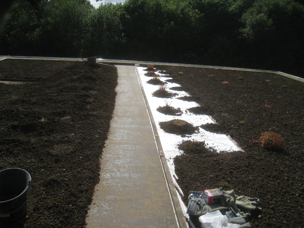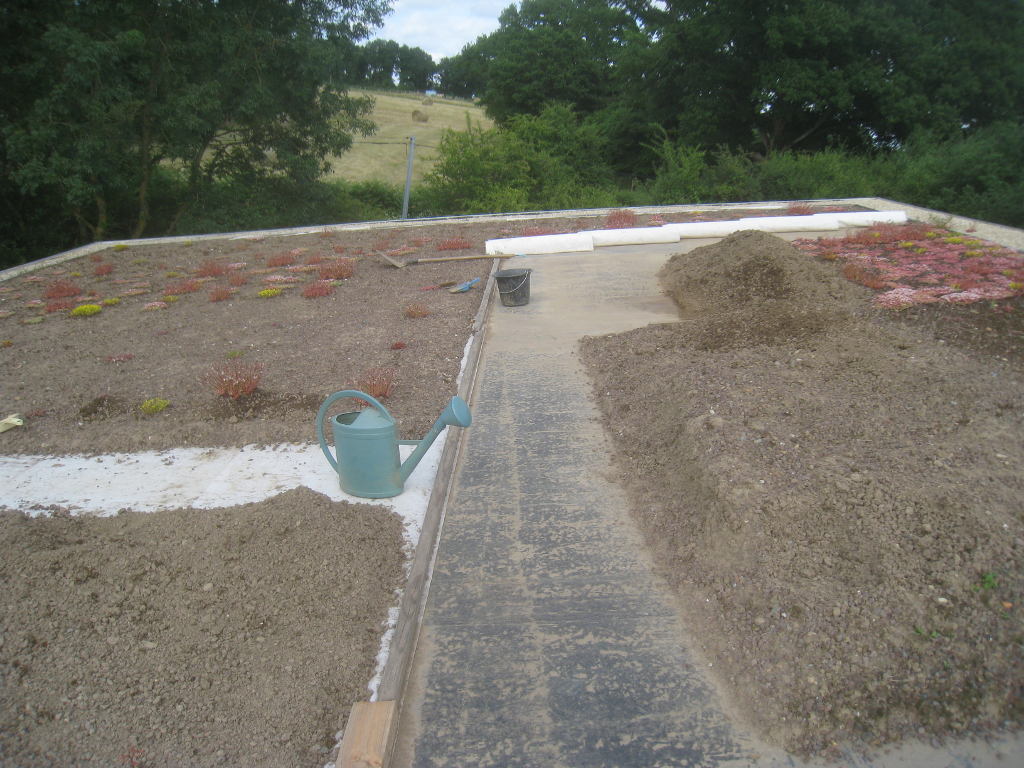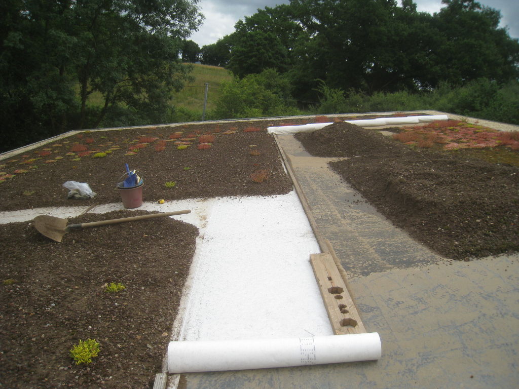 2013/06/30 : Toiture (20) : CorrectionMis à jour : 24 février 2016 | Imprimer | Affichages : 2014Suite de la pose du géotextile (rouleaux n°5 à n°7) : Du côté Est : Du côté Ouest : Détail du décapage de la bâche EPDM : Au moindre doute (impact ou autre) :