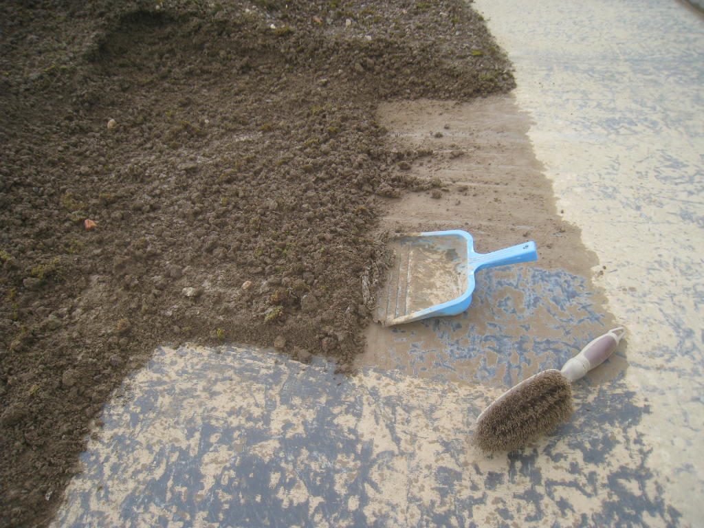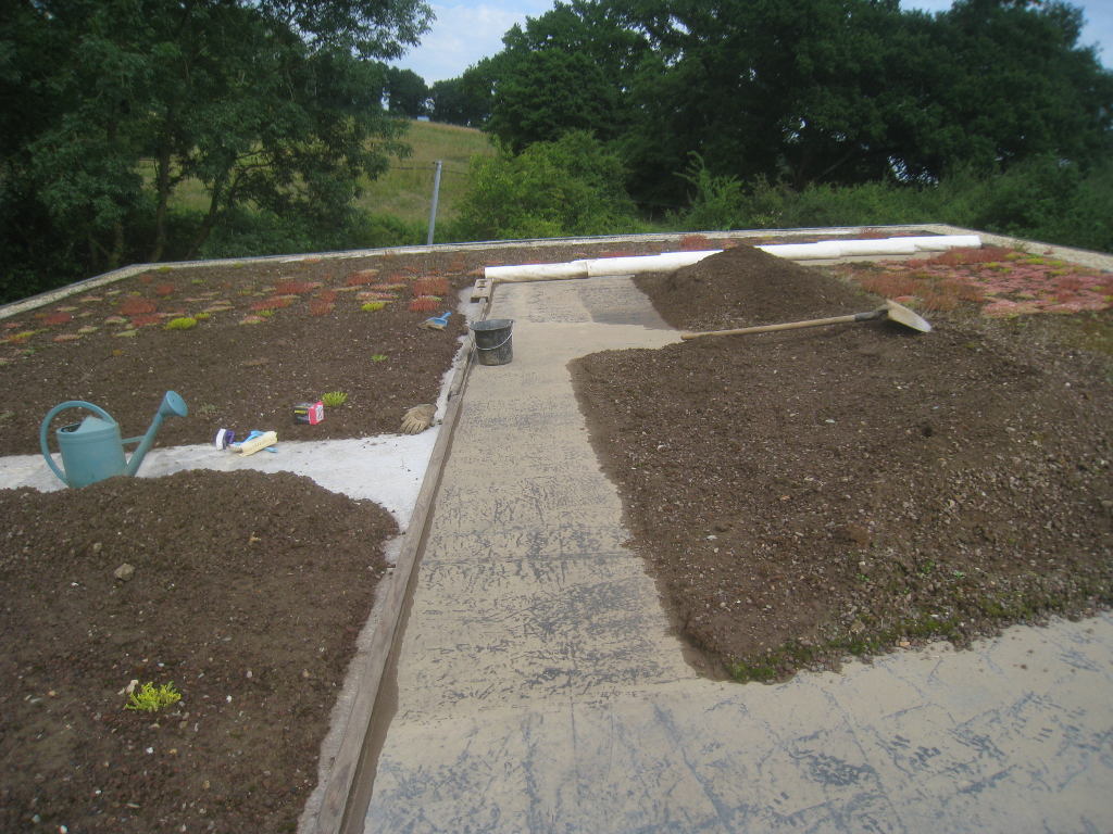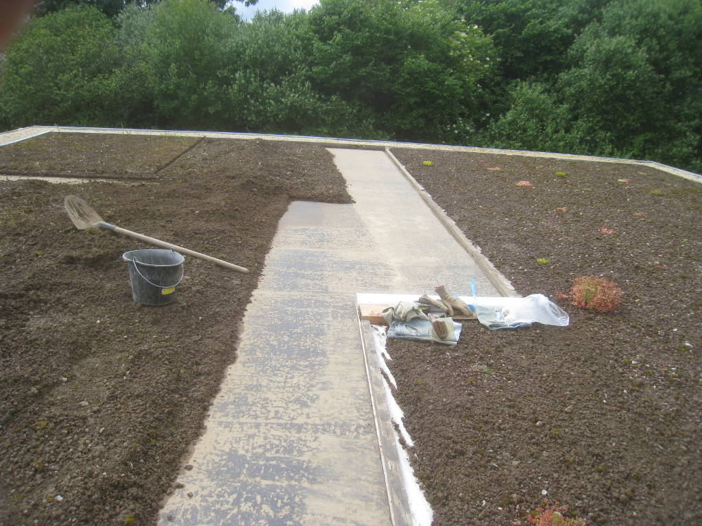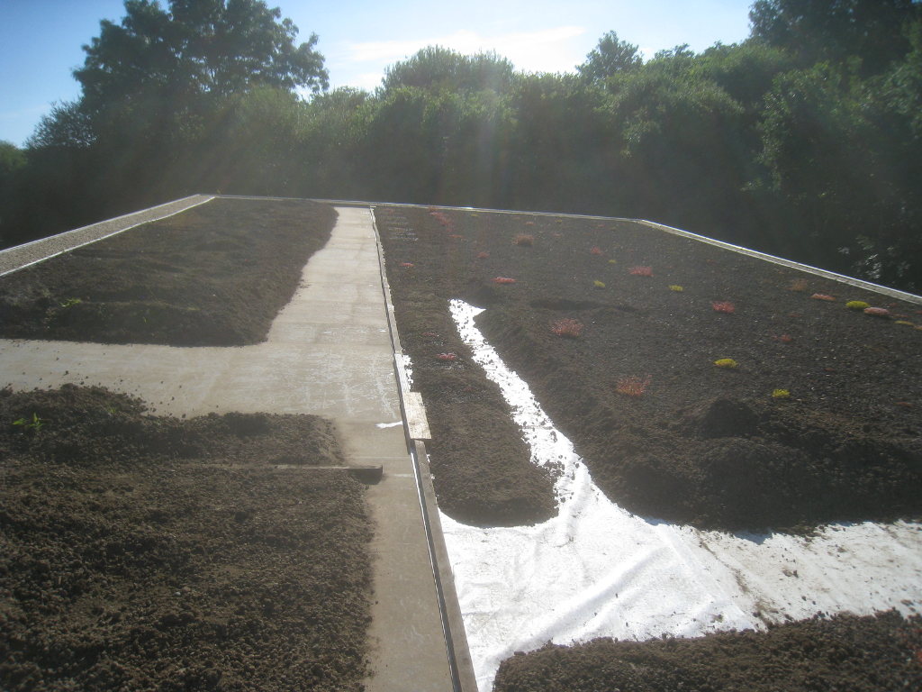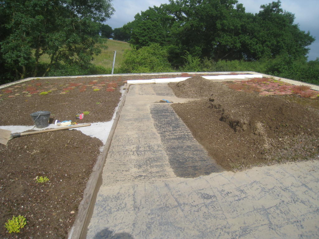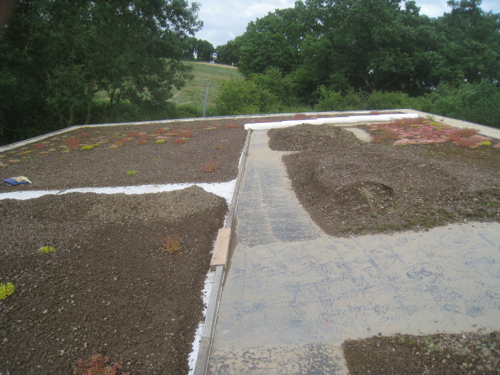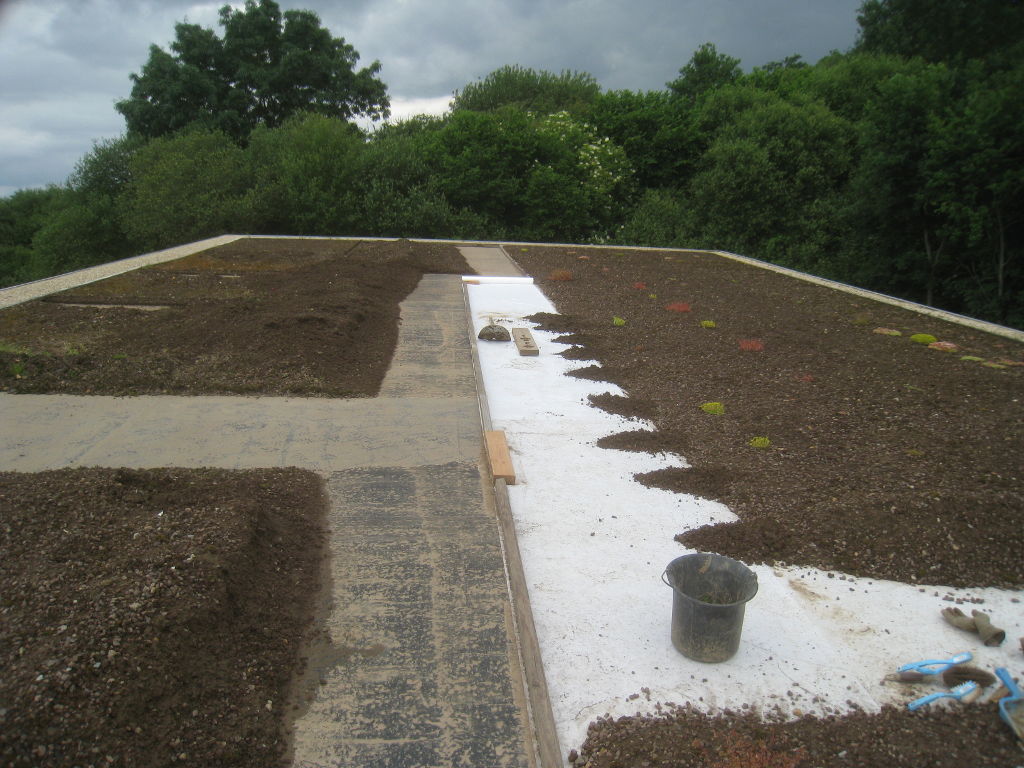 2013/06/30 : Toiture (20) : CorrectionMis à jour : 24 février 2016 | Imprimer | Affichages : 2014Suite de la pose du géotextile (rouleaux n°5 à n°7) : Du côté Est : Du côté Ouest : Détail du décapage de la bâche EPDM : Au moindre doute (impact ou autre) :