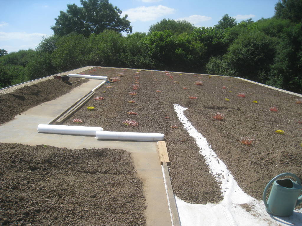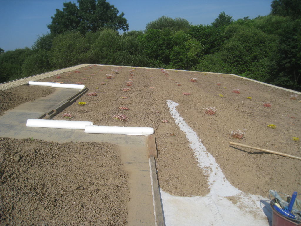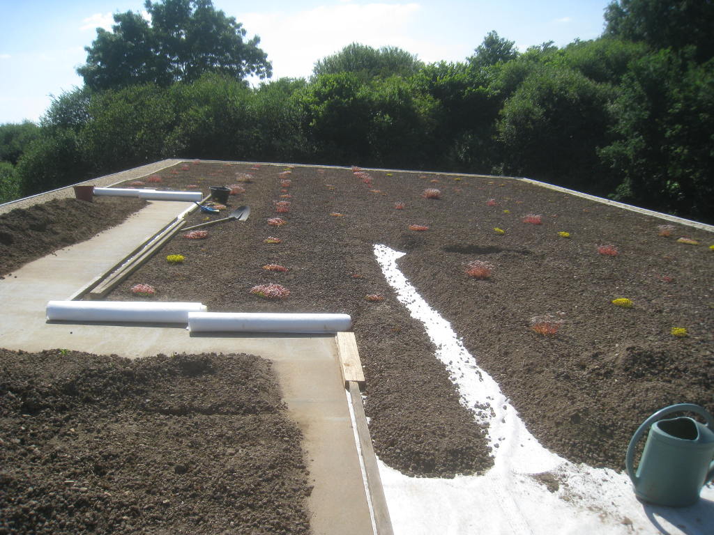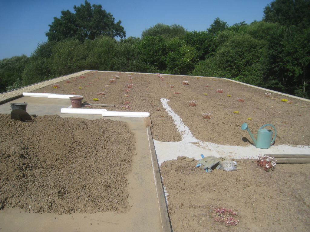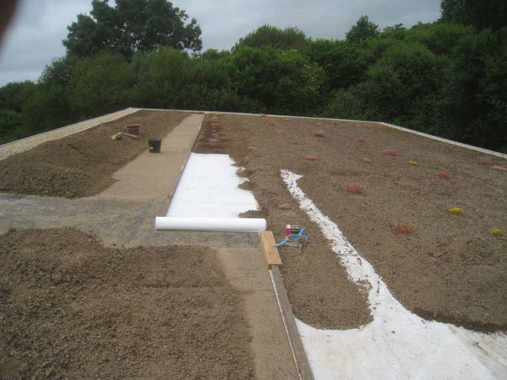 2013/07/08 : Toiture (21) : CorrectionMis à jour : 2 août 2015 | Imprimer | Affichages : 1974Suite de la pose du géotextile (rouleaux n°8 à n°11) : Rouleau de géotextile n°8/11 : Rouleau de géotextile n°9/11 : Rouleaux de géotextile n°10/11 et n°11/11: