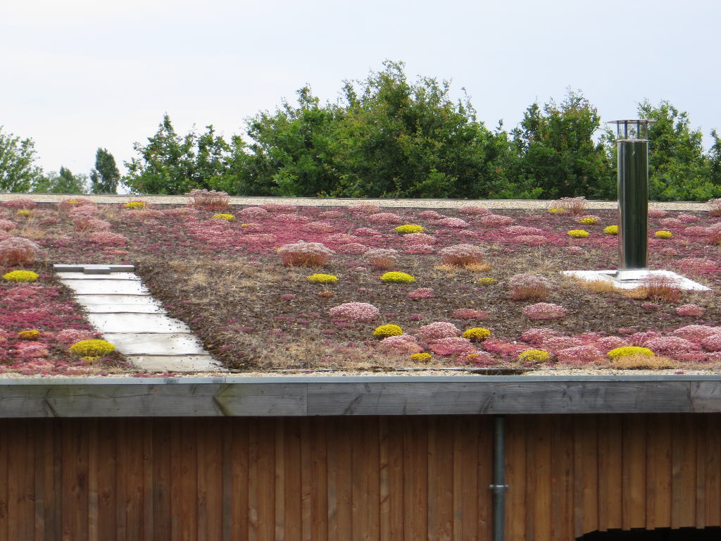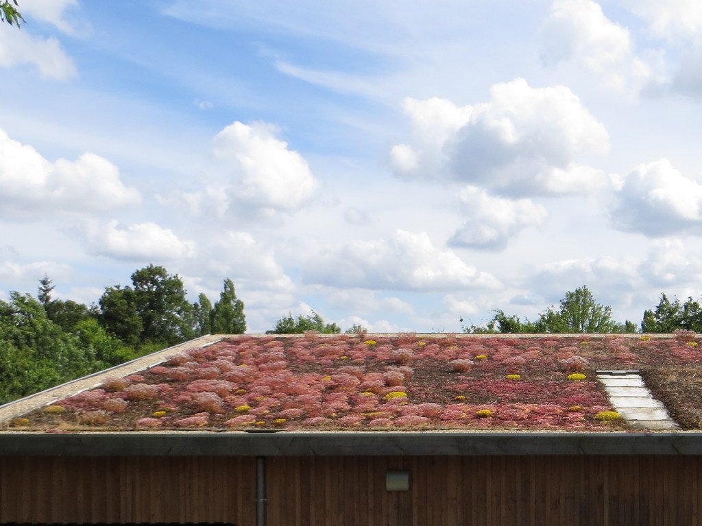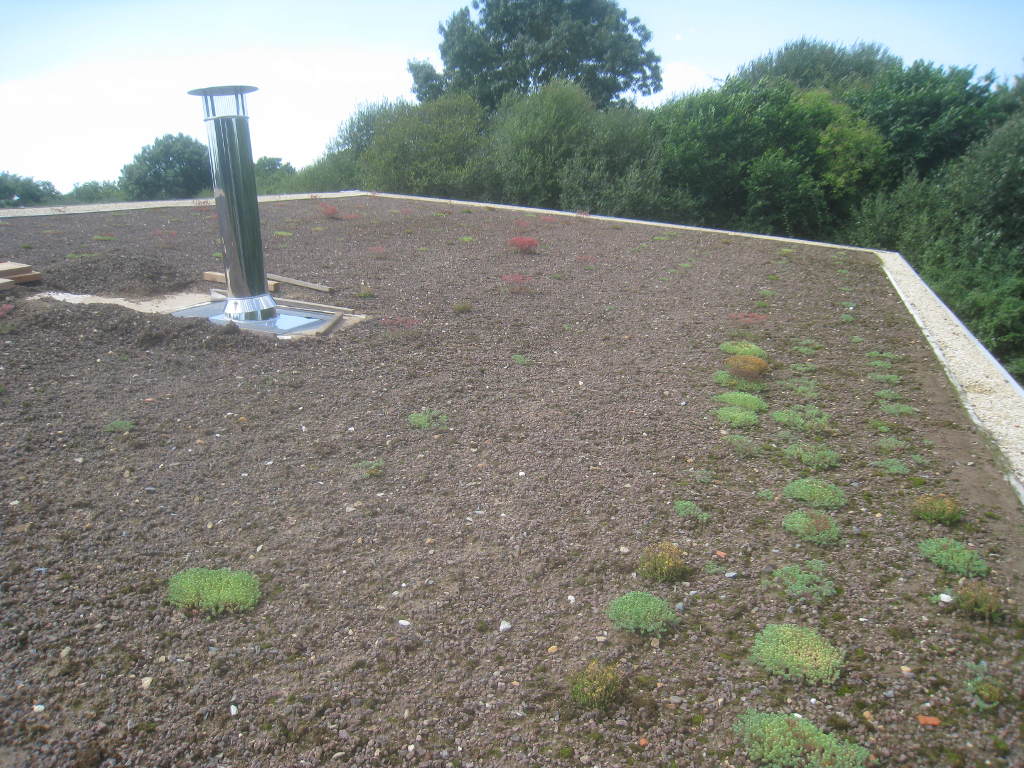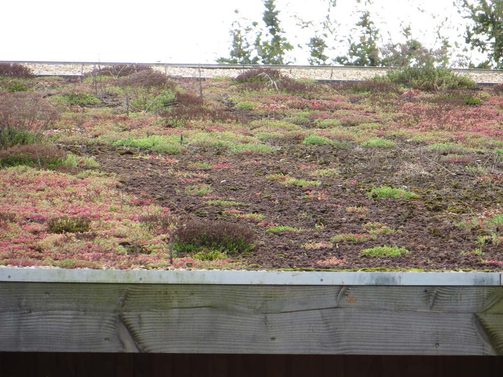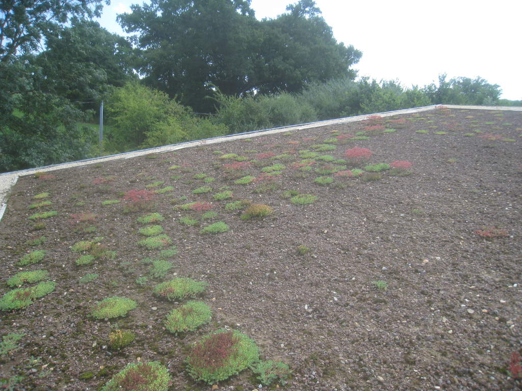 2014/08/11 : Toiture (24)Mis à jour : 24 février 2016 | Imprimer | Affichages : 2531Complément du substrat végétal de la toiture : En détail : Pour voir le développement des sédums, la toiture il y a un an : Et la toiture aujourd'hui :