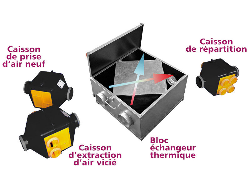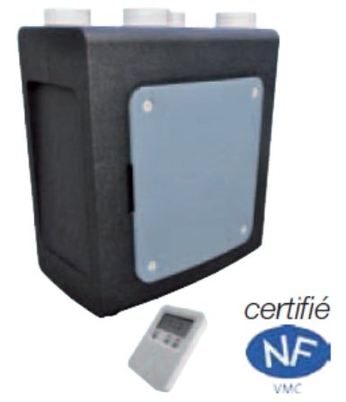 - débits, puissance, rendement, bruit : 100 m3/h, 010 W; 96%, 37/45 db ;