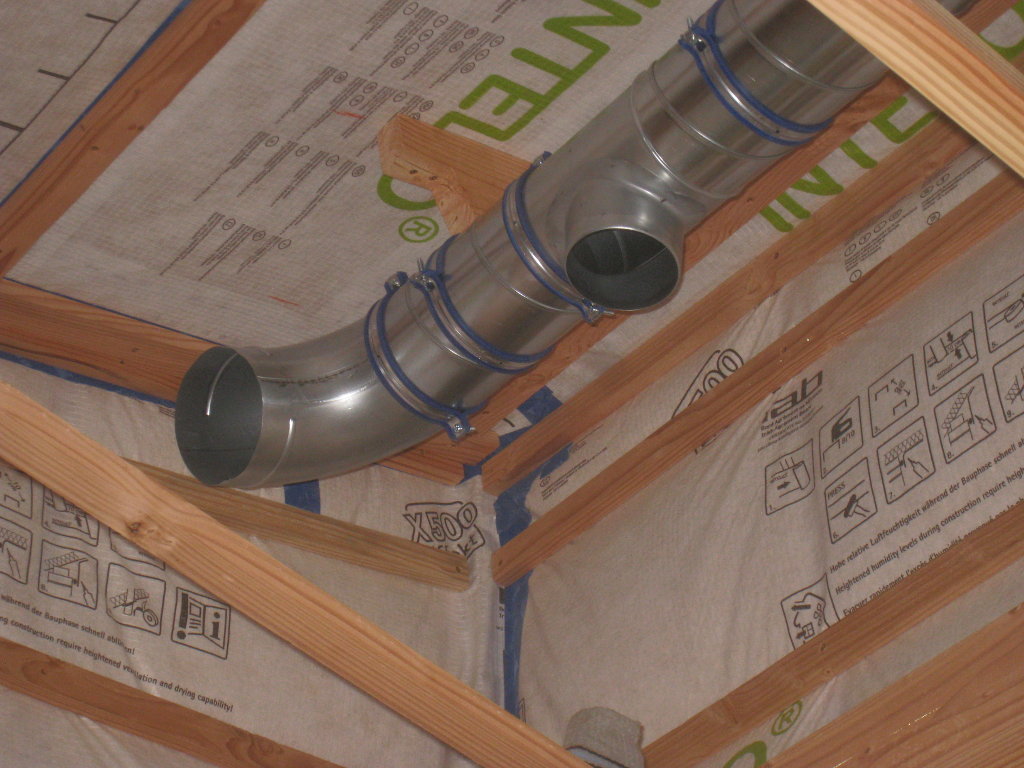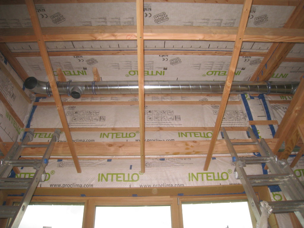 Mise en place du réseau intérieur en tubes galva de 160mm de diamètre :