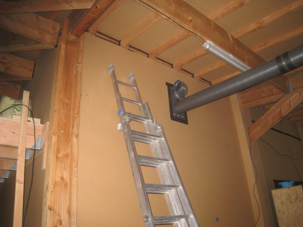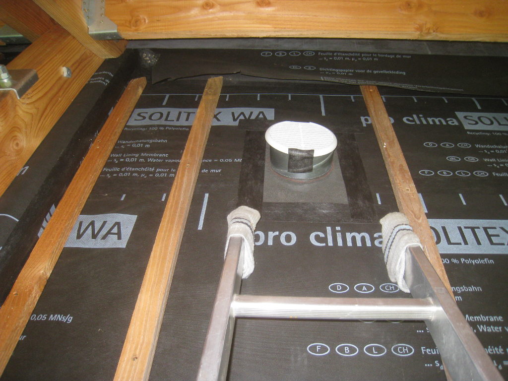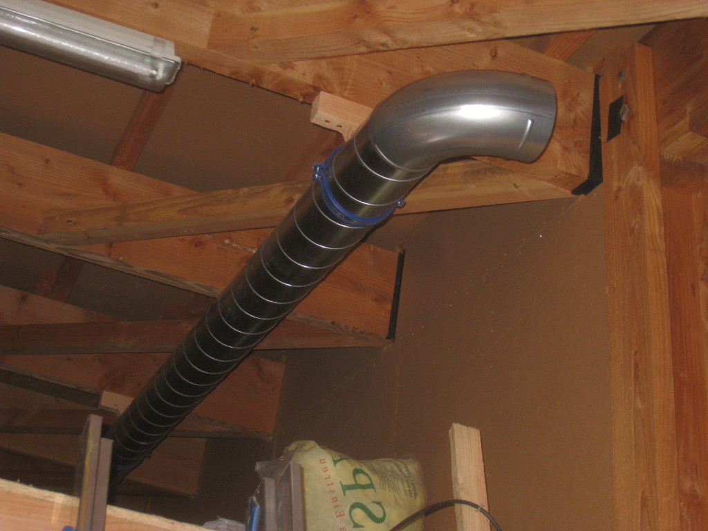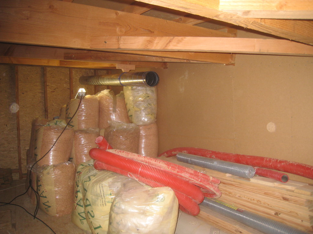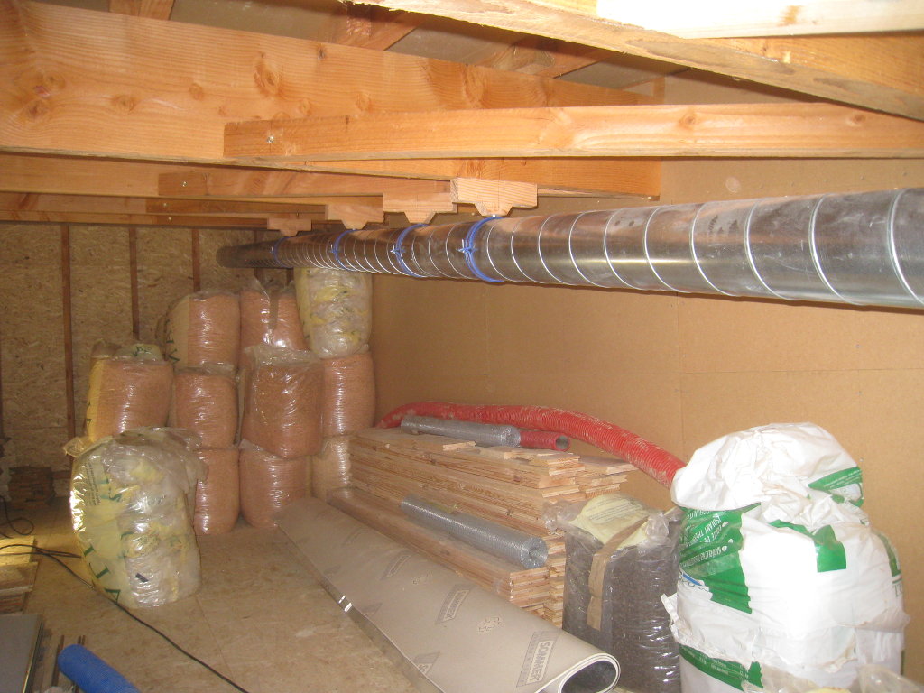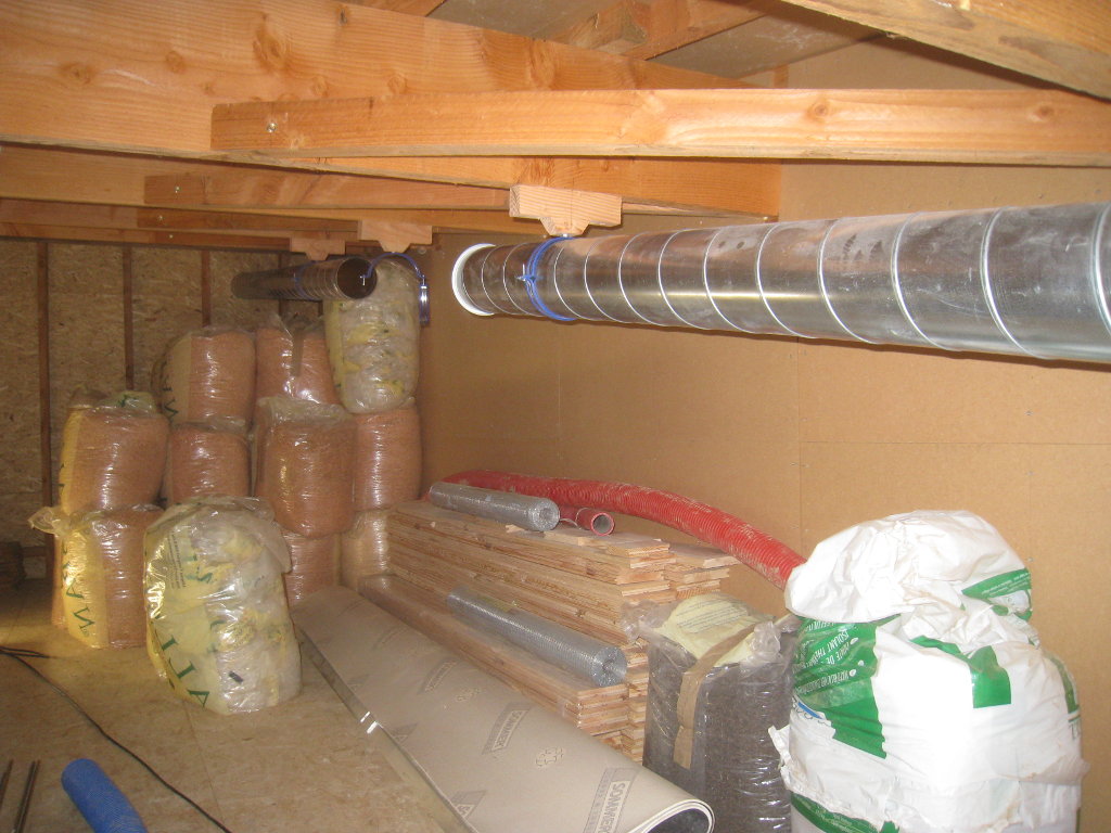 2013/04/02 : Ventilation (8) - EntréeMis à jour : 23 février 2016 | Imprimer | Affichages : 2357Nous continuons avec le réseau d'aspiration depuis l'extérieur : Le tuyau passe dans la buanderie et le grenier pour rejoindre la façade Sud : L'aspiration se fera au Sud sous le brise-soleil : Note : la grille n'est pas définitive ...