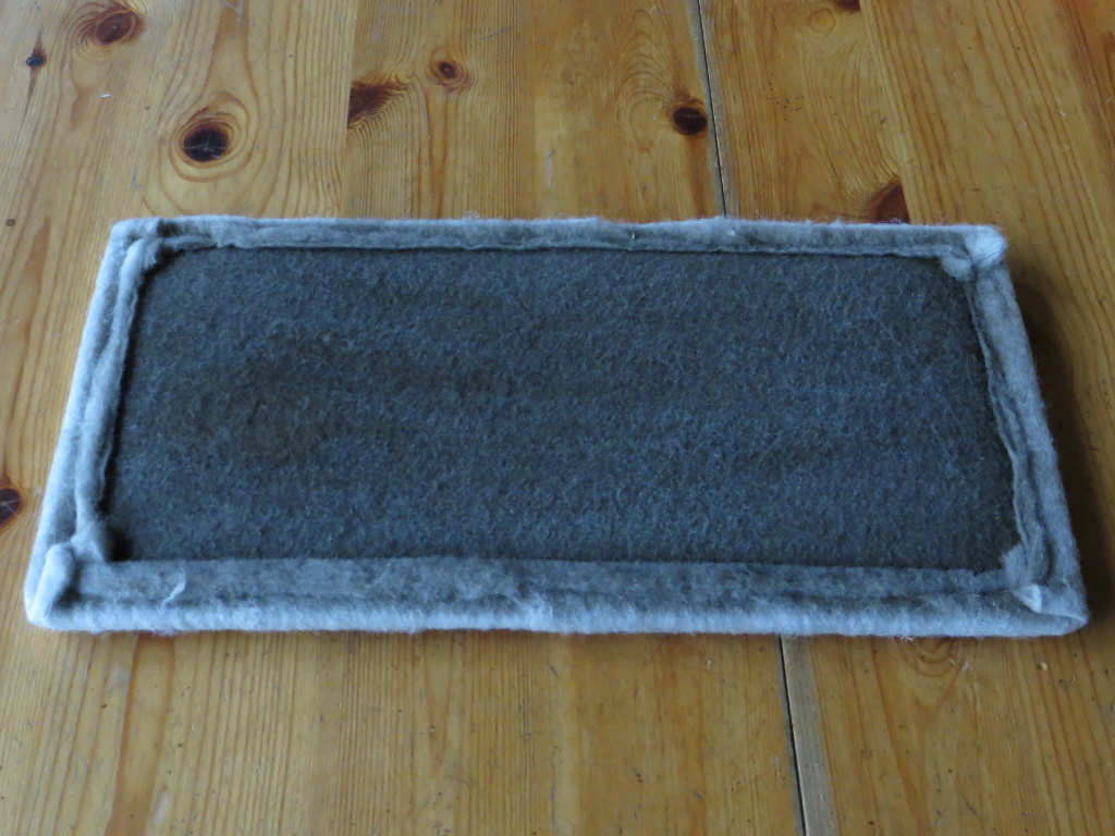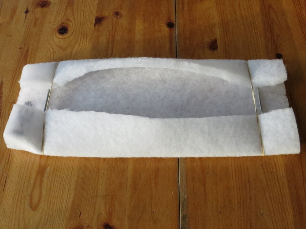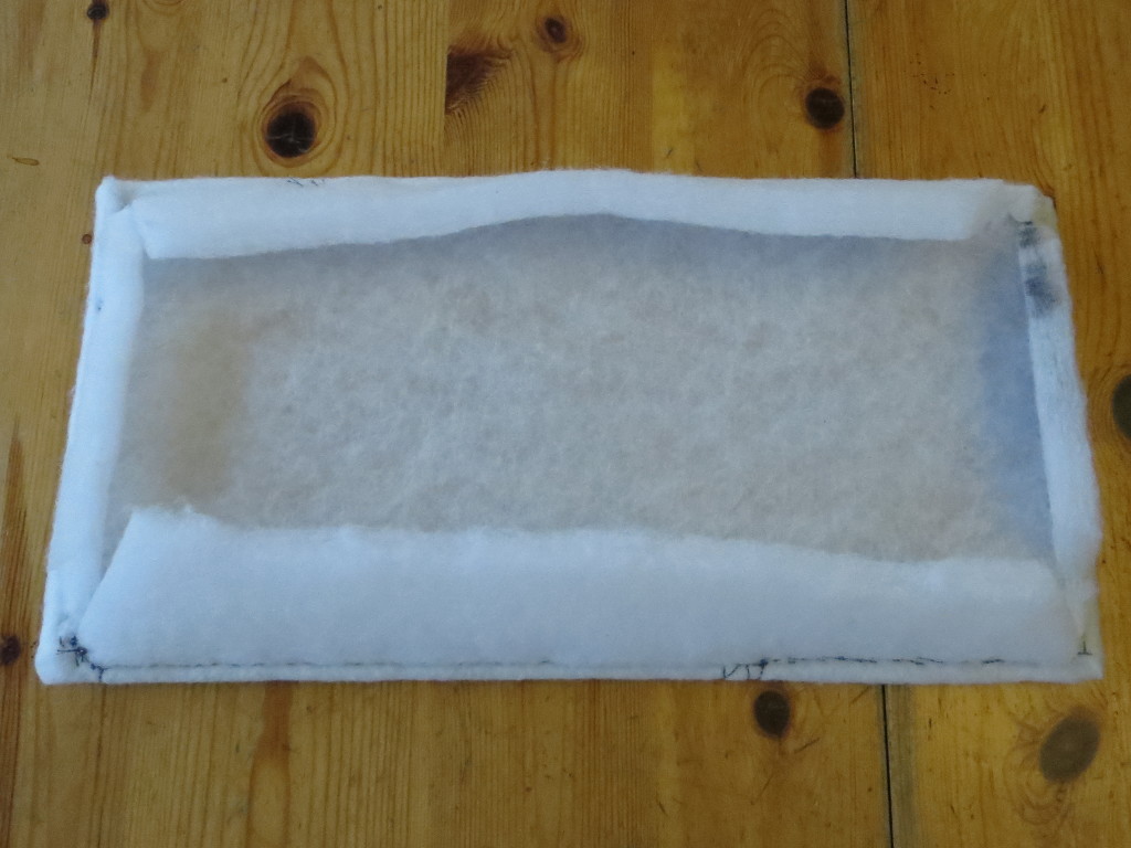 - ne pas faire la couture trop près du cadre, mais laisser environ trois millimètres (l'objectif est de laisser un bourrelet souple autour du cadre, car c'est ce bourrelet qui fait joint en s'insérant dans une rainure taillée dans le polystyrène).