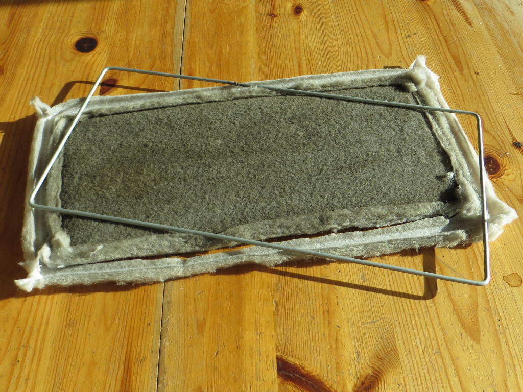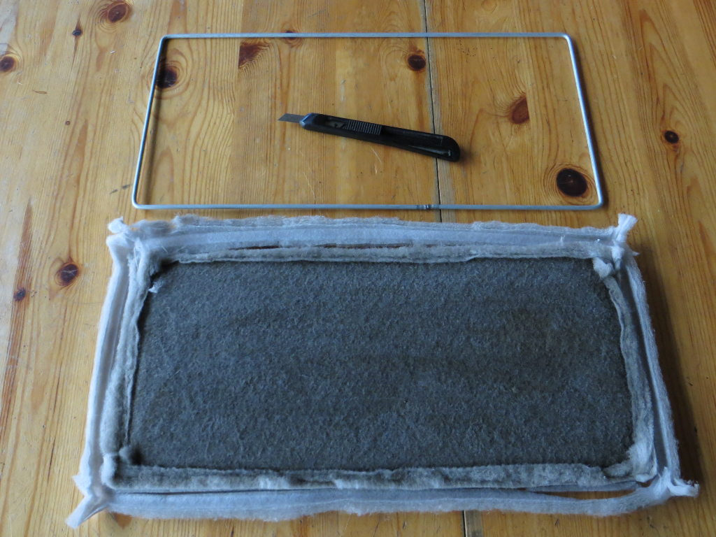 Les filtres de ma VMC sont très rustiques de conception : un cadre métallique rectangulaire tout simple, et un tissus qui vient envelopper ce cadre, puis est cousu sur lui-même.