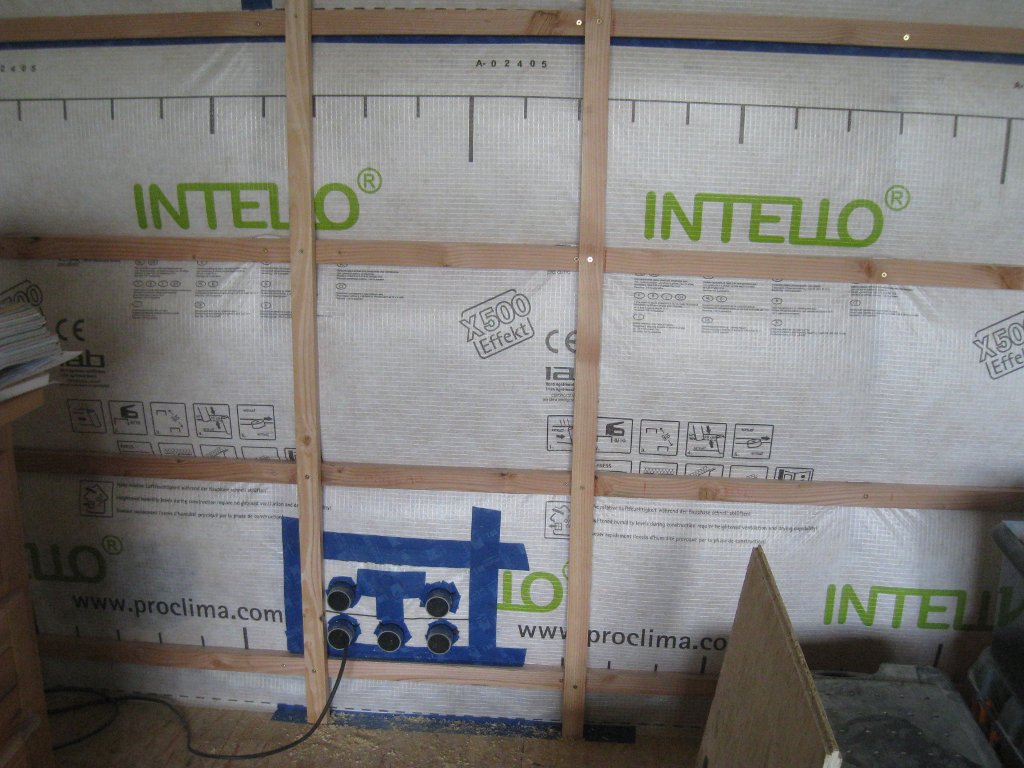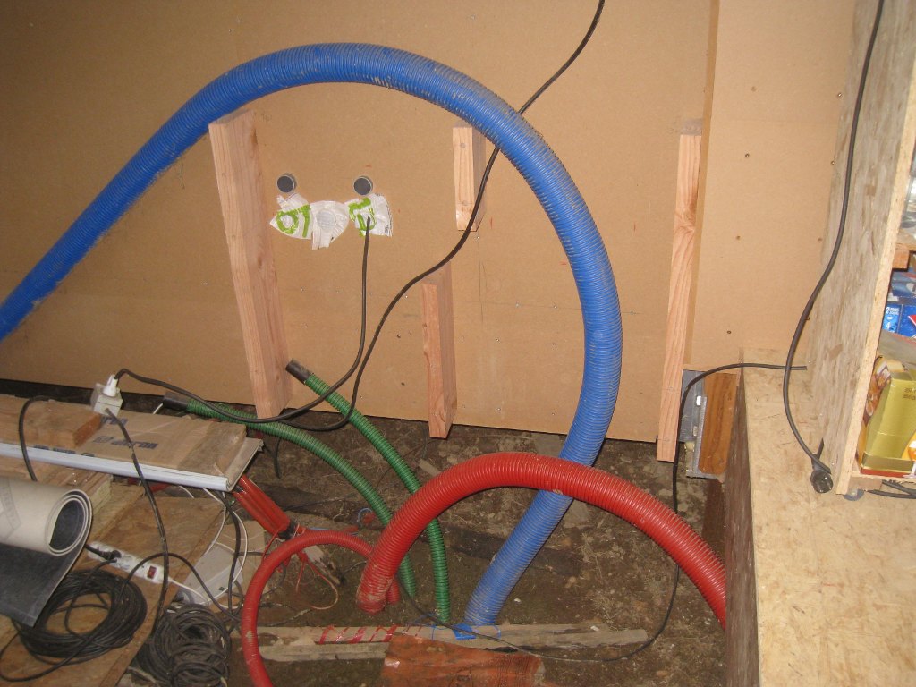 Je prépare le passage des réseaux à travers le mur, dans le caisson prévu à cet effet.