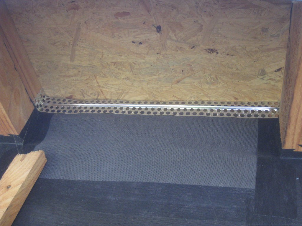 Ce jeudi, je pose les grilles anti-moineaux en haut du mur extérieur Nord, pour empêcher les moineaux et autres petites bêtes d'aller s'installer dans la lame d'air sous la toiture végétale.
