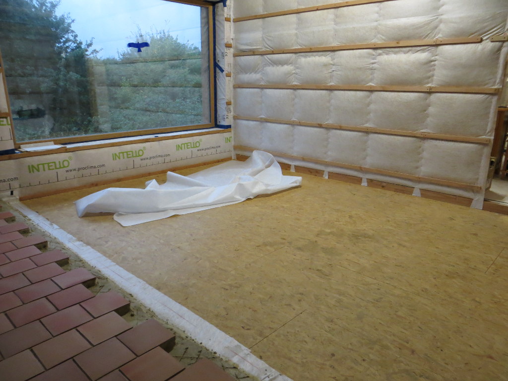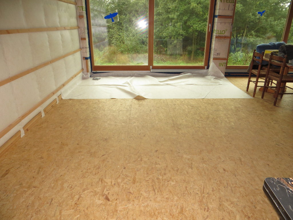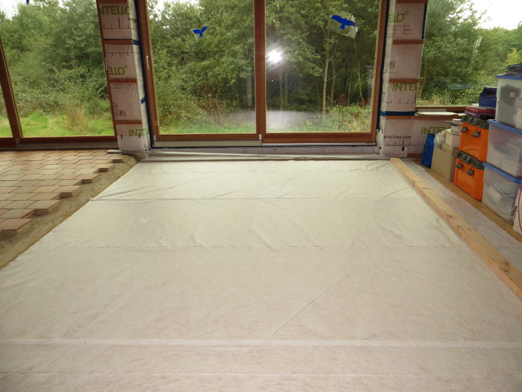 Pose de la chappe et des tomettes dans la grande salle (côté Sud de la travée n°2) :
