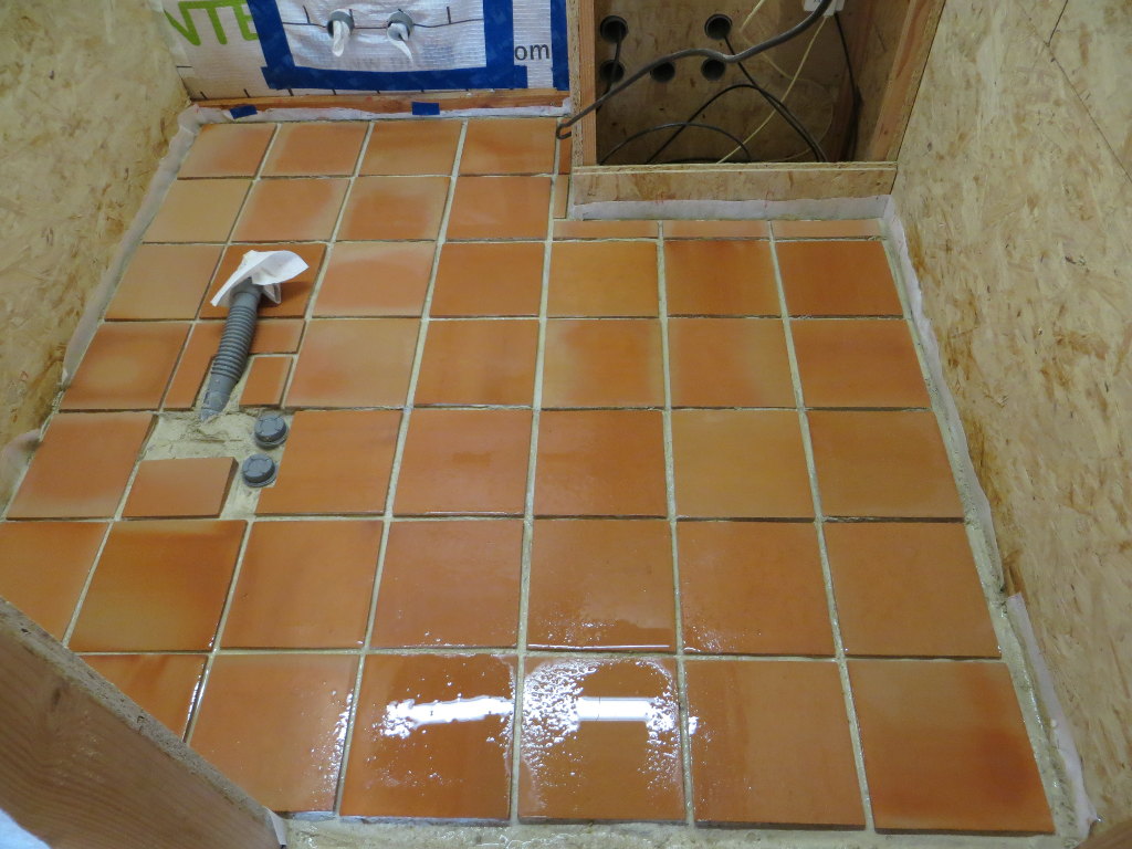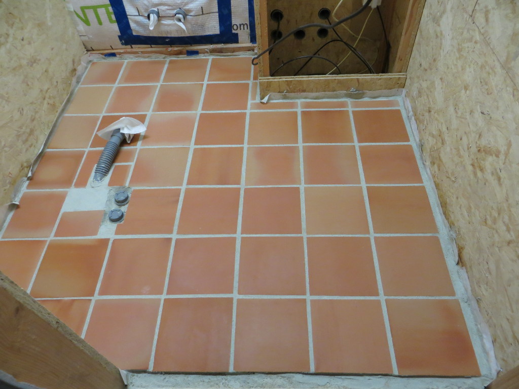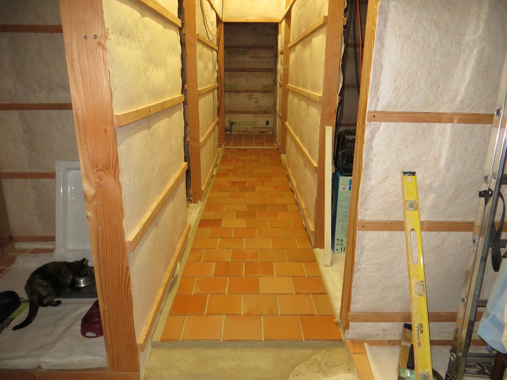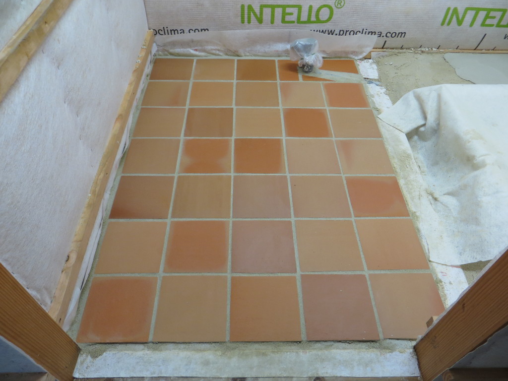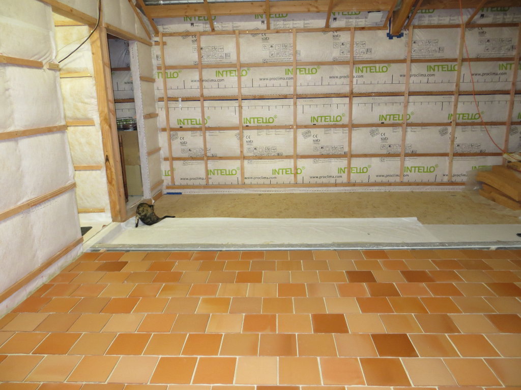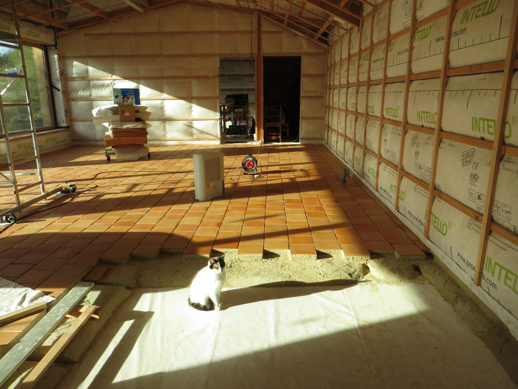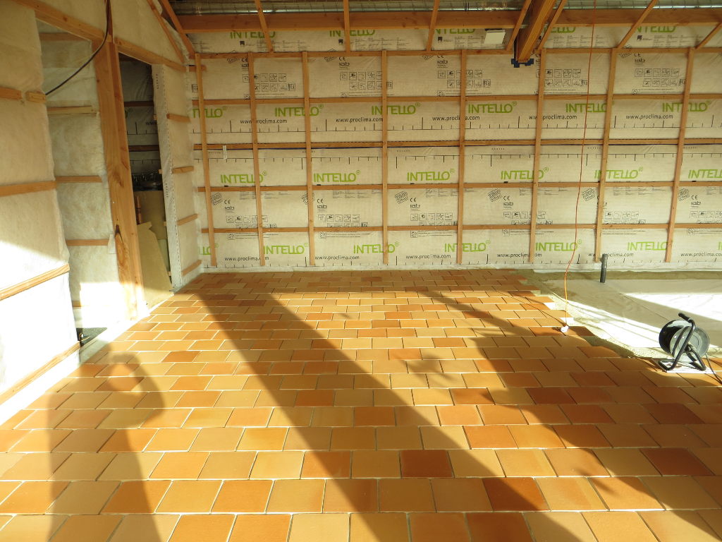 Pose de la chappe et des tomettes dans la grande salle (côté Nord de la travée n°4) :