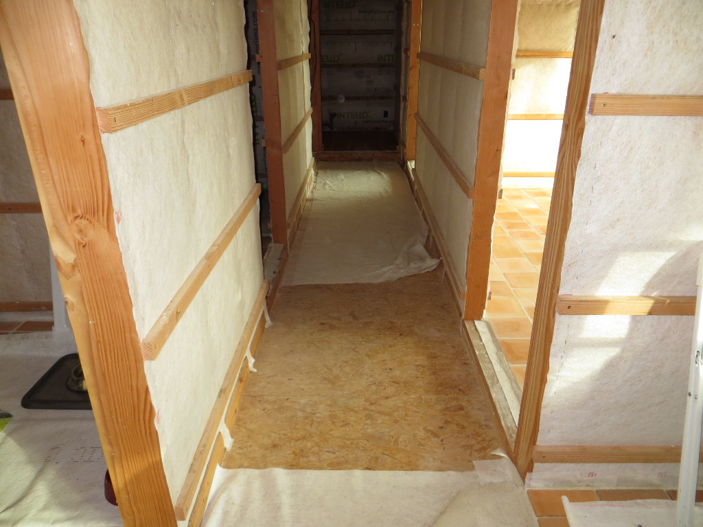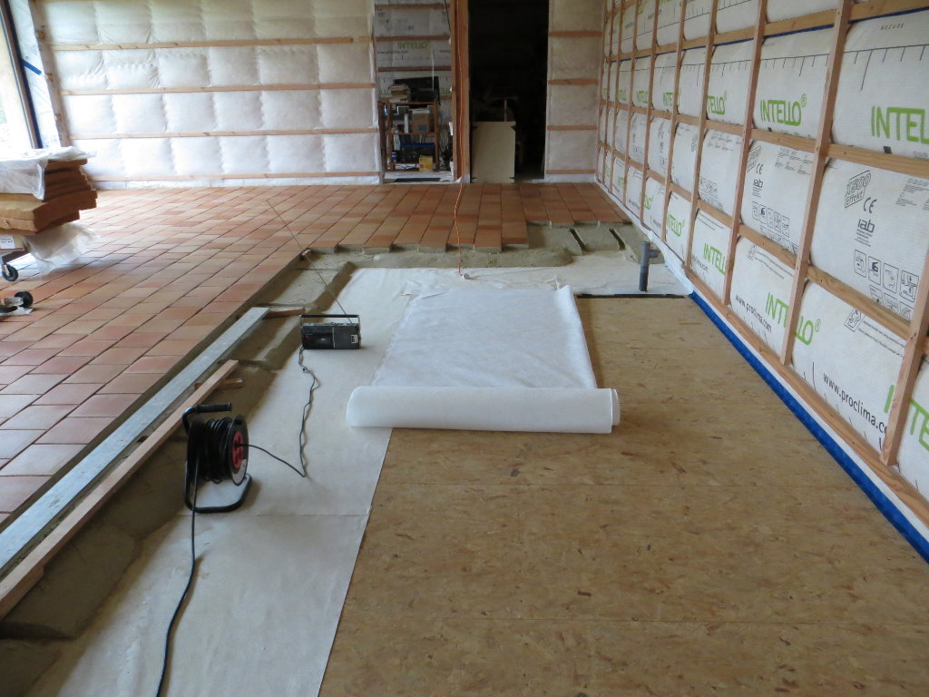 Pose de la chappe et des tomettes dans la grande salle (côté Nord de la travée n°2) :