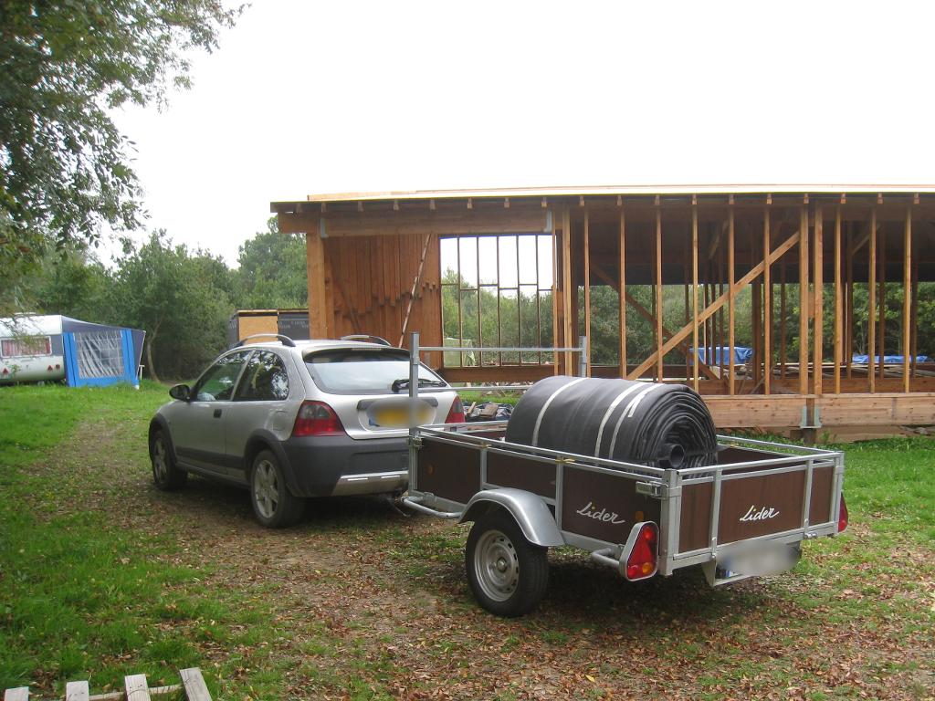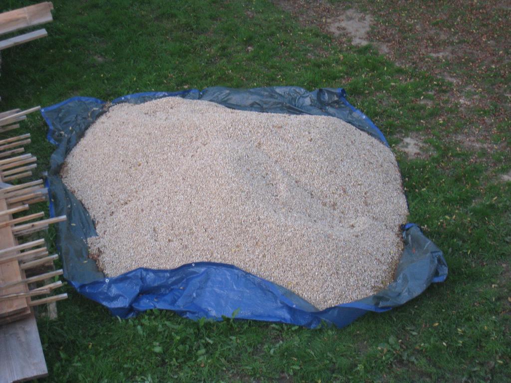 Petite vue aérienne sur les 3 m3 de gravier roulé destinés au lest de la bâche EPDM :