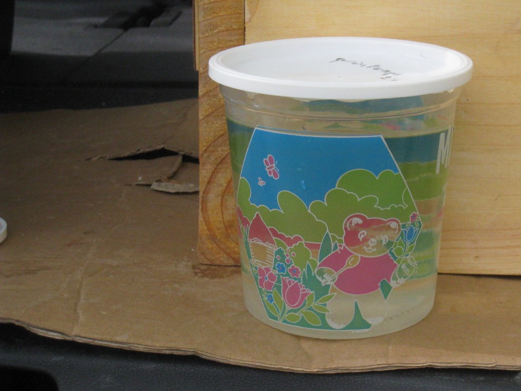 Avec l'enthousiasme des débutants, nous nous précipitons le midi, et nous réussissons, non sans mal, à le transférrer dans une ruchette :