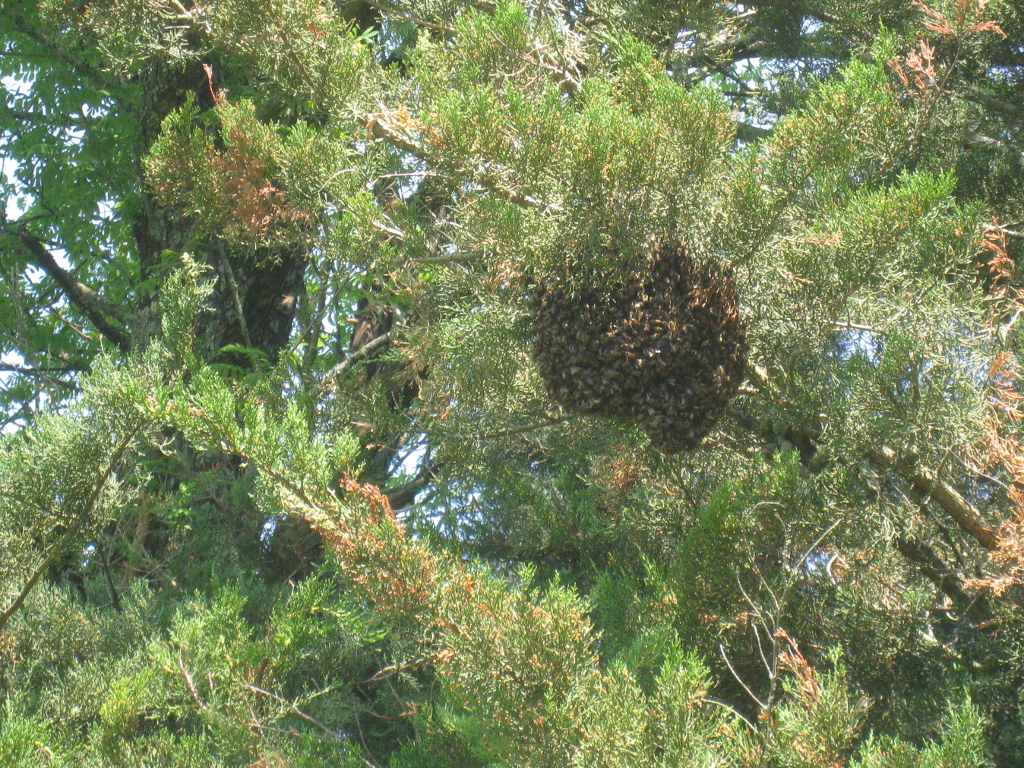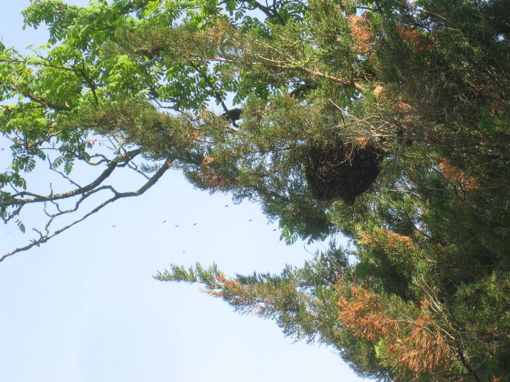 Vendredi, 13H00, des amies me préviennent qu'un essaim vient d'arriver chez elles et s'est posé sur un arbre.