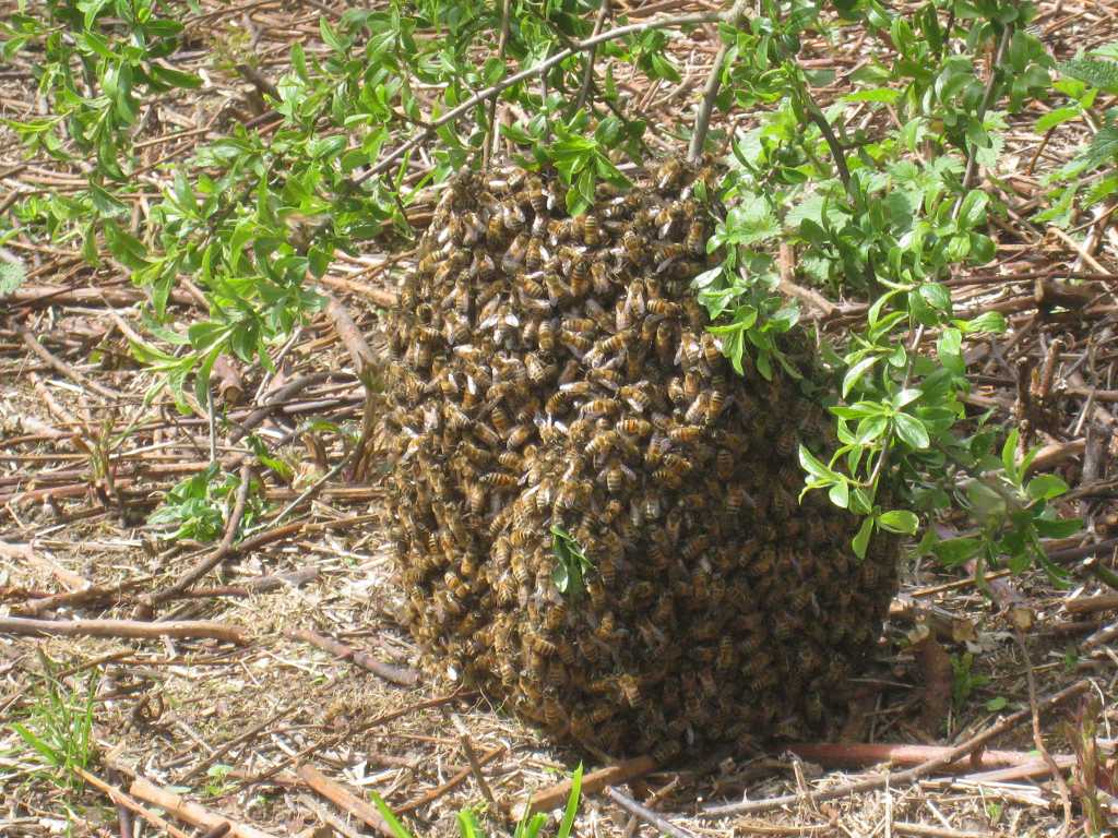 Une petite secousse sur la branche permet alors d'en débarrasser les dernières abeilles.