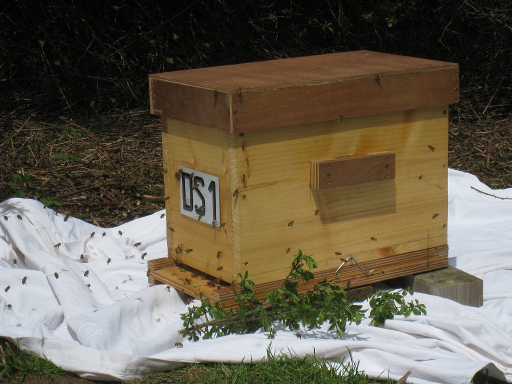 Il ne reste alors qu'à refermer la ruchette, puis, un peu plus tard, de mettre la ruchette à l'ombre, et de bloquer l'entrée pour éviter que l'essaim ne change d'avis et ne reparte ailleurs.