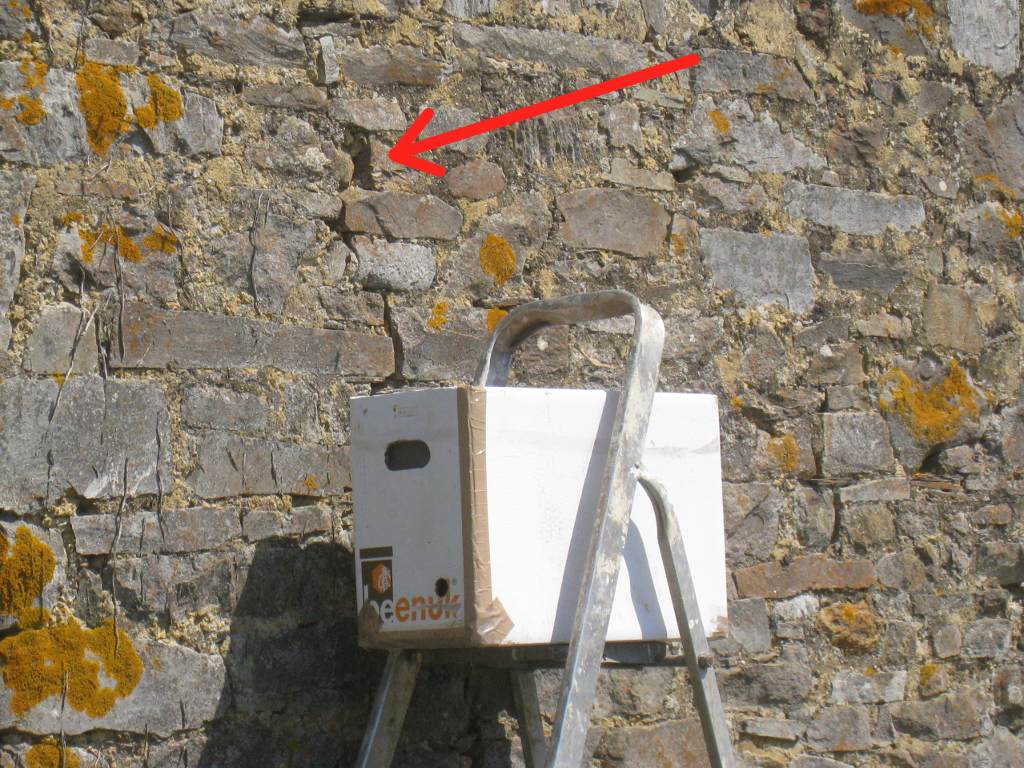 J'apprends un peu plus tard que ce mur abrite une colonie, et que selon toute vraissemblance, l'essaim est simplement rentré au bercail après une sortie qui aura duré 1H30.