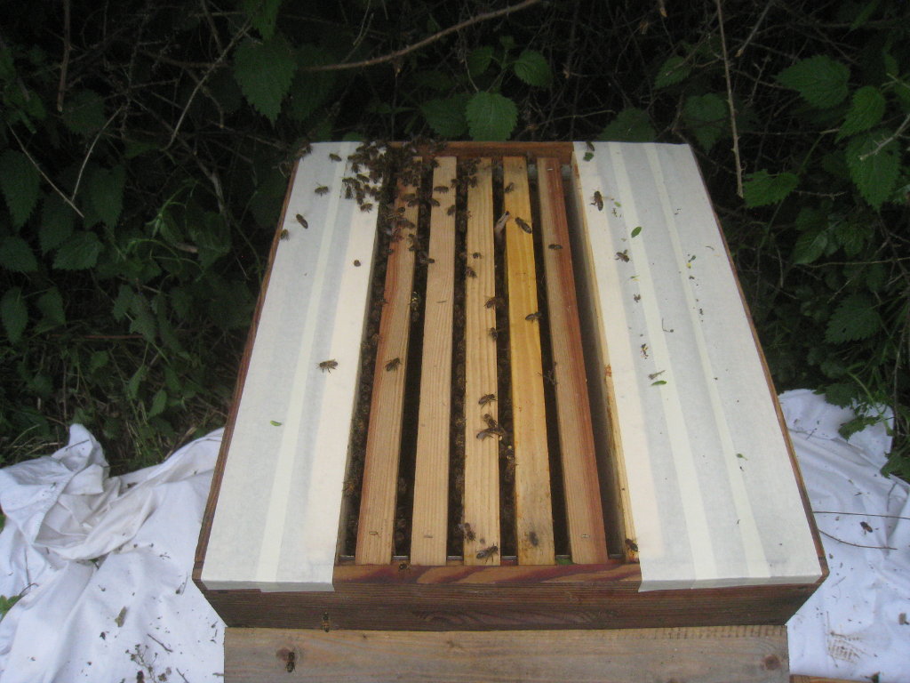 Cette fois, je n'ai plus de ruchettes en carton, si pratiques pour récupérer les essaims.
