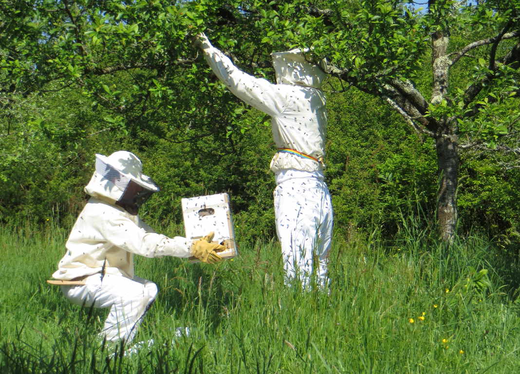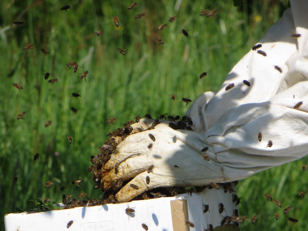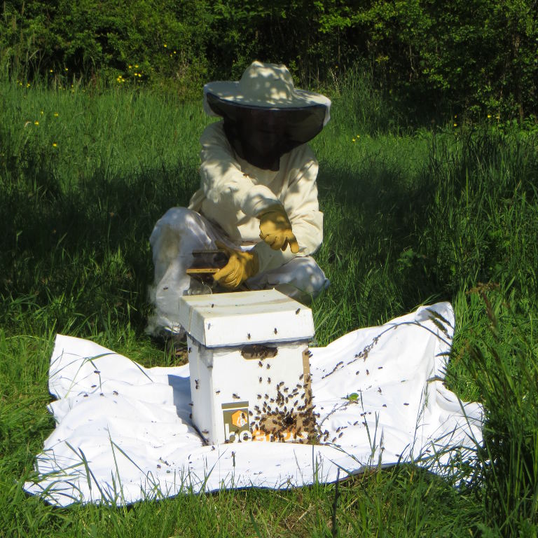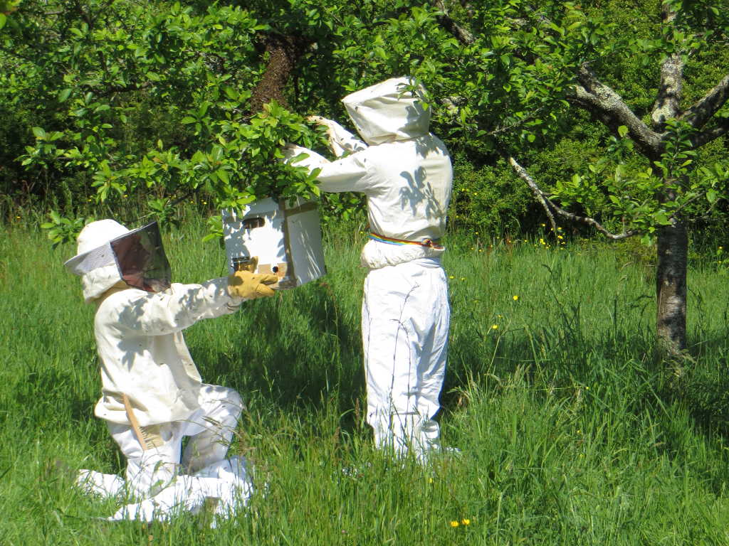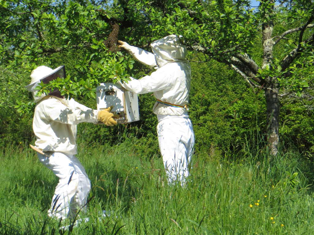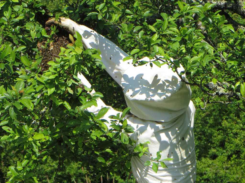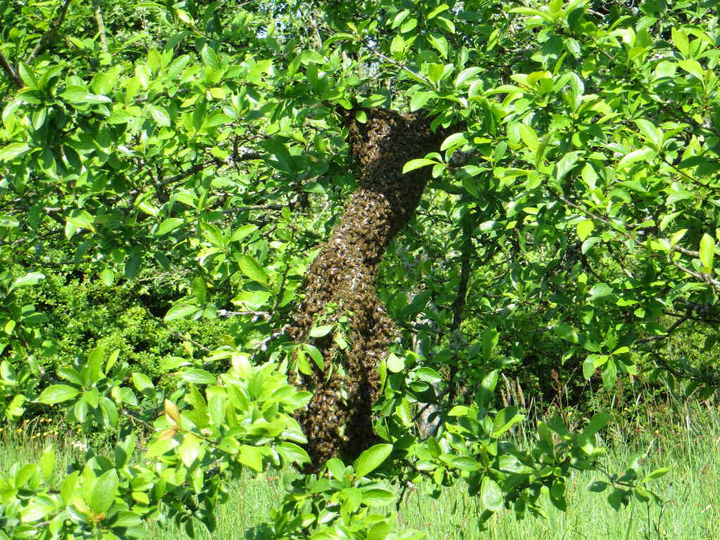 2014/05/04 : Essaim (9)Mis à jour : 13 février 2016 | Imprimer | Affichages : 1966Dimanche après-midi, c'est ma ruche placée dans le verger de pommiers qui essaime : Également accessible, il est tout aussi rapidement récupéré : Note : L'essaim sort de la P2, la ruchette est pour Stéphane (LC). Précédent Suivant