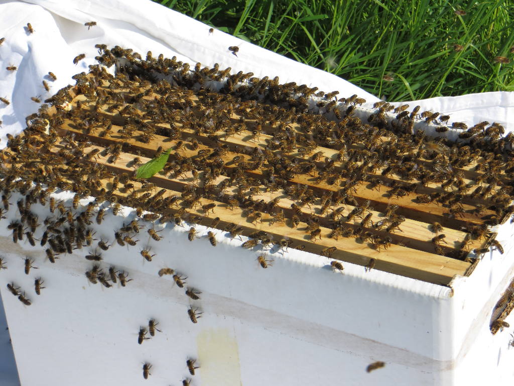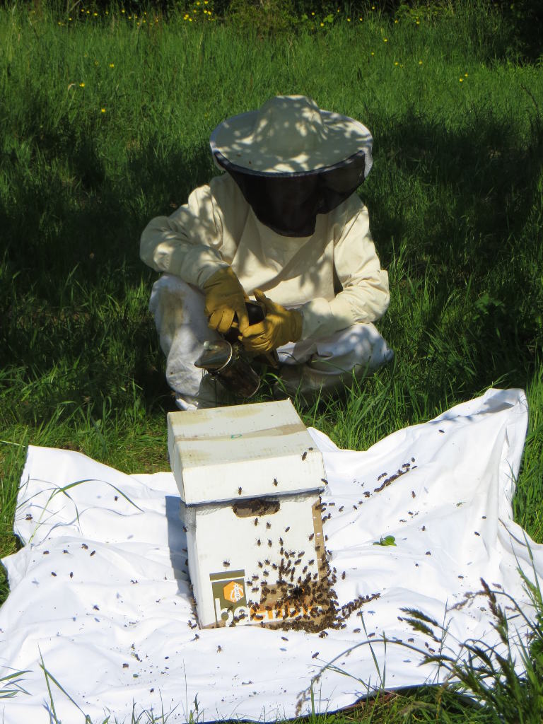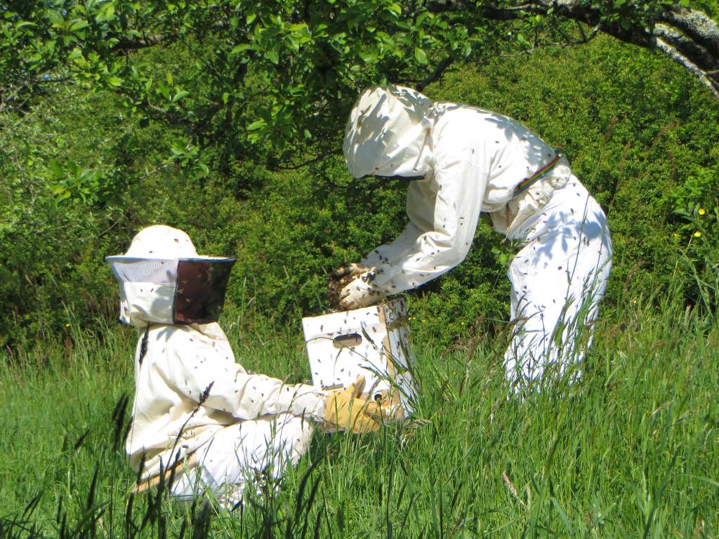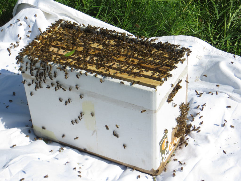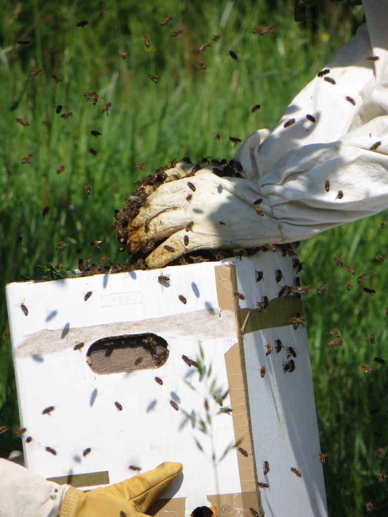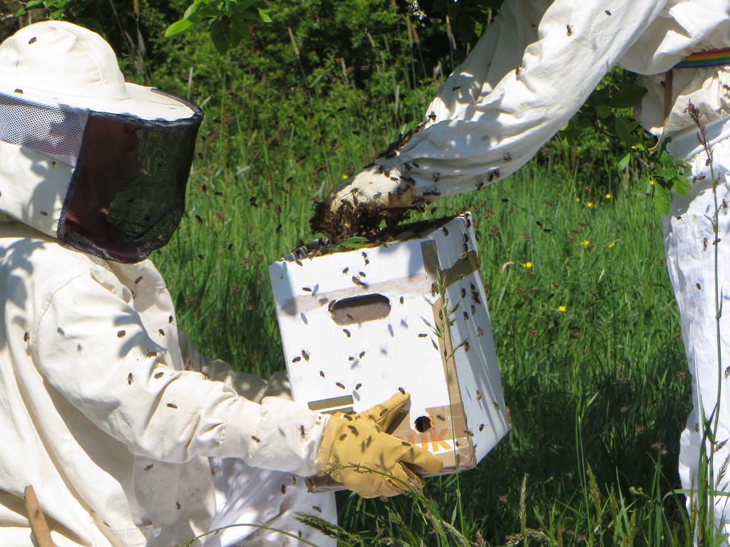 2014/05/04 : Essaim (9)Mis à jour : 13 février 2016 | Imprimer | Affichages : 1966Dimanche après-midi, c'est ma ruche placée dans le verger de pommiers qui essaime : Également accessible, il est tout aussi rapidement récupéré : Note : L'essaim sort de la P2, la ruchette est pour Stéphane (LC). Précédent Suivant