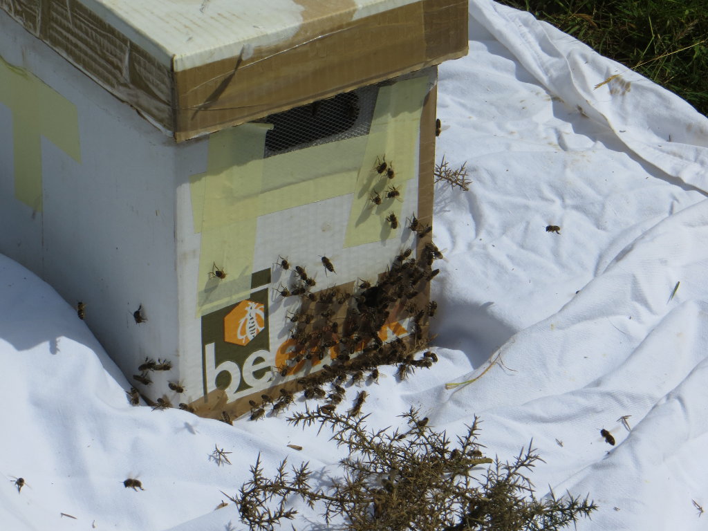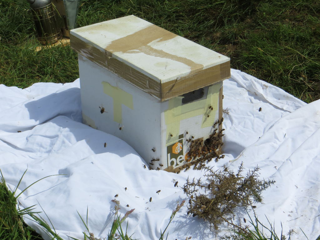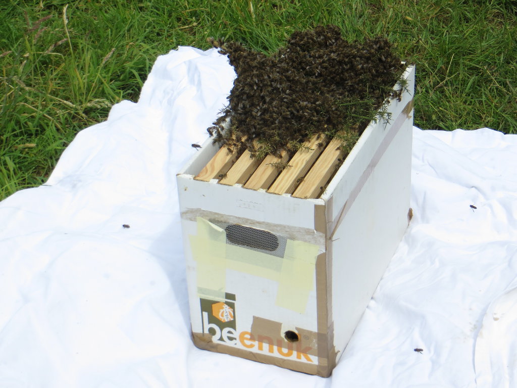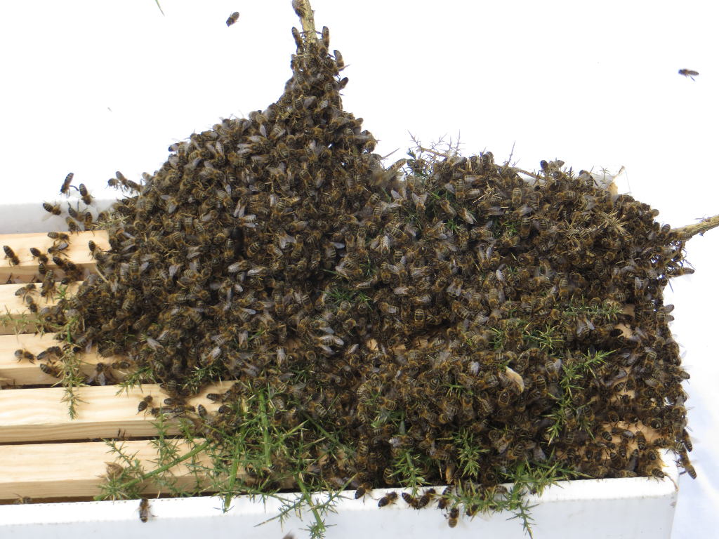 2014/05/09 : Essaim (10)Mis à jour : 13 février 2016 | Imprimer | Affichages : 1744Vendredi, en visite sur notre second site campagnard : Il sera récupéré facilement et rapidement : Note : j'avance 5 cadres, la ruchette est pour Stéphane, emmenée le soir même. Précédent Suivant